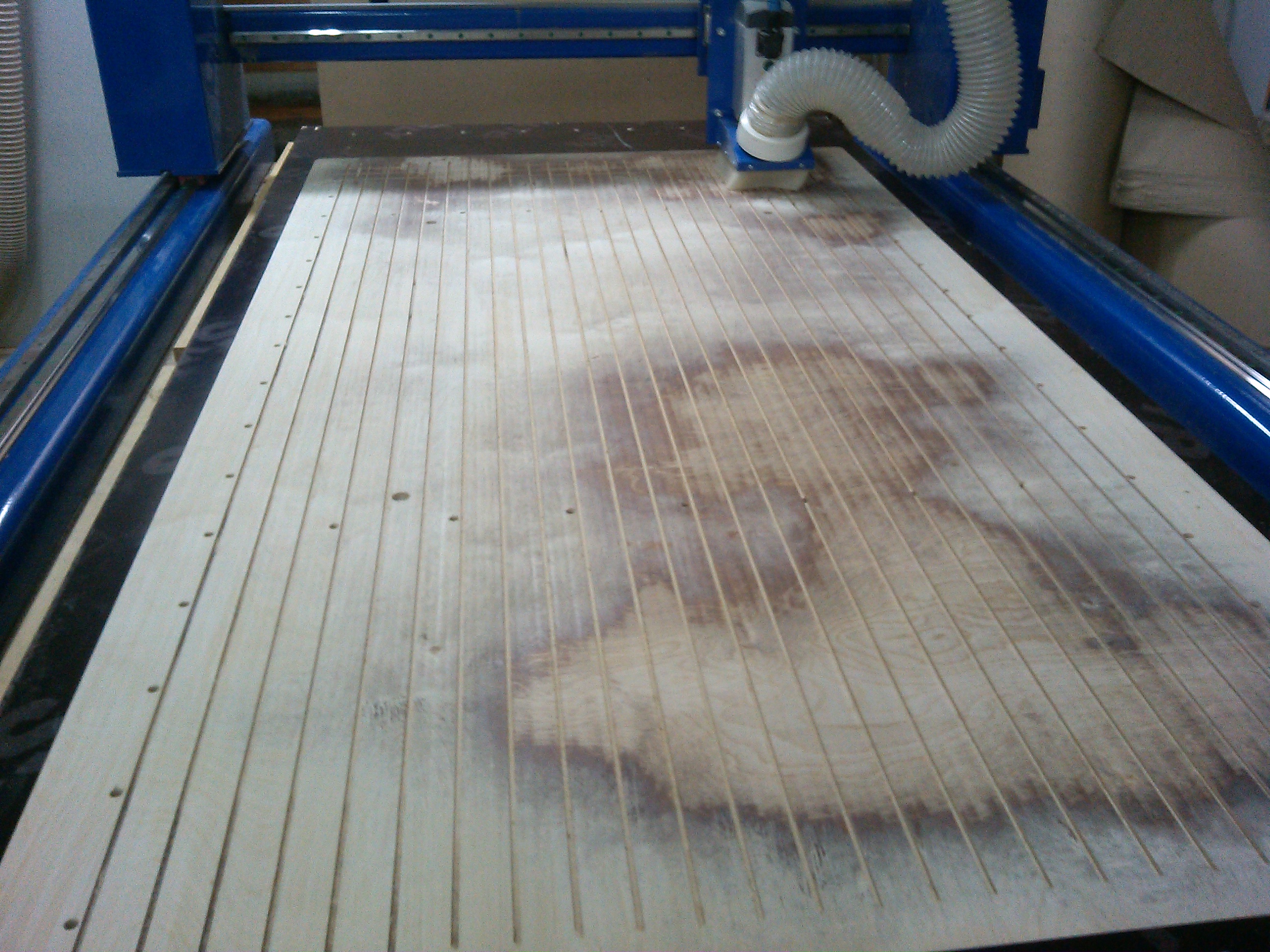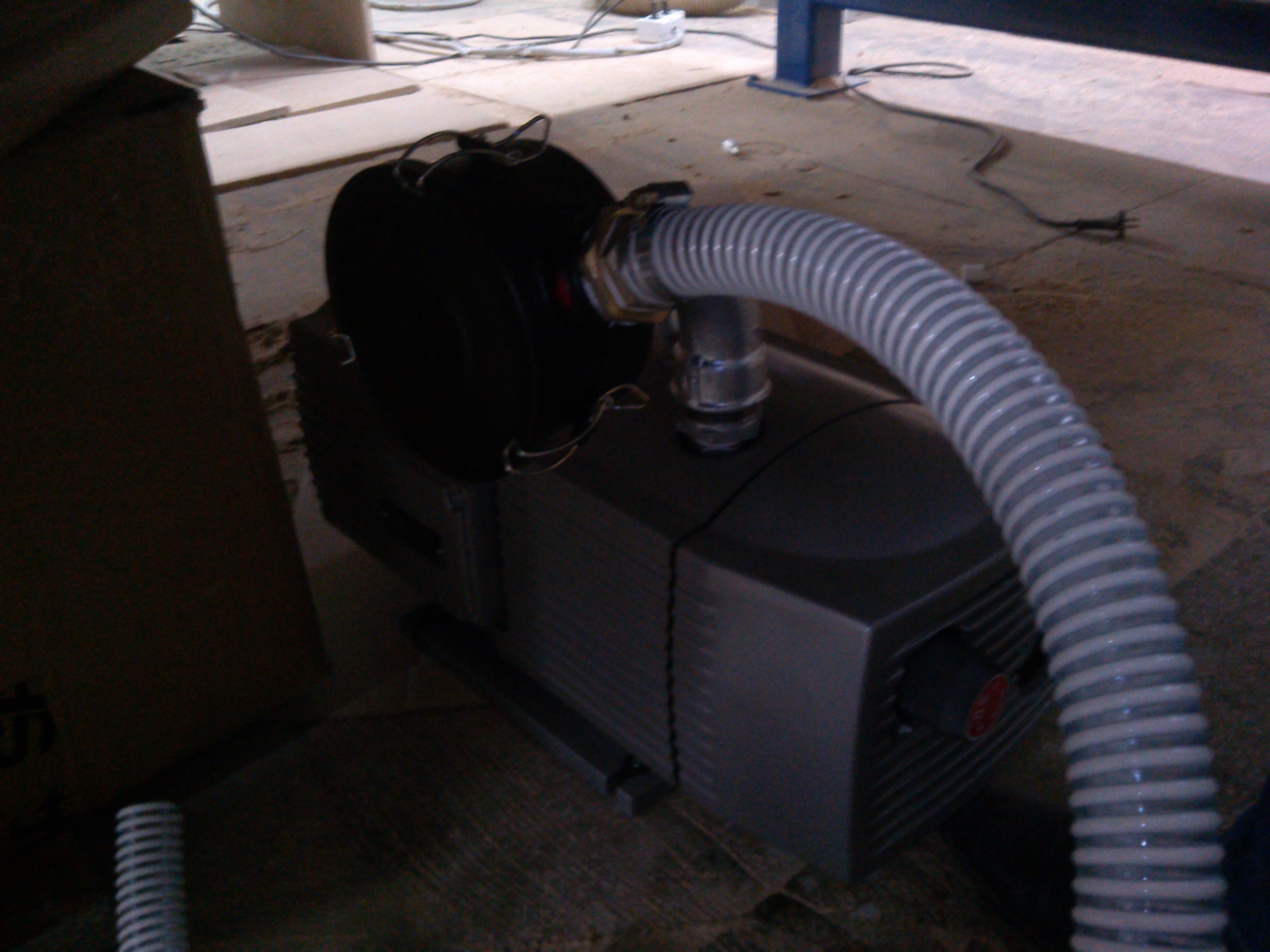 Начали с того, что сунули два листа "финской" фанеры в калибр, сняли верхний слой с одной стороны и склеили их в гидравлическом прессе. Был приобретен ваккумный насос. Не что-то там, а Becker.