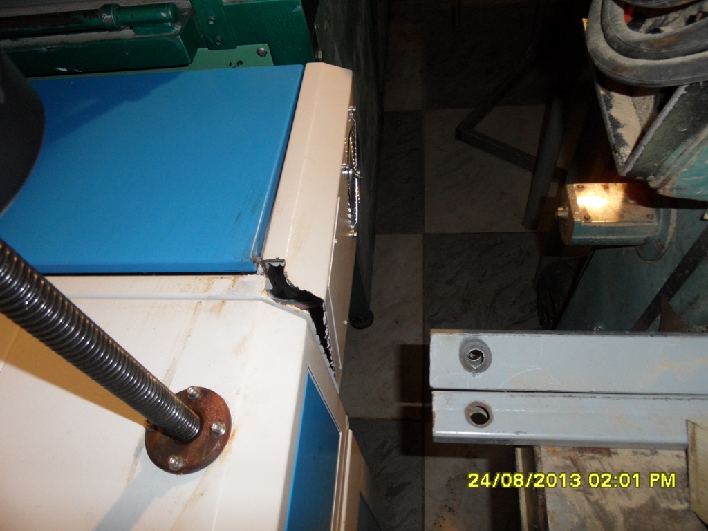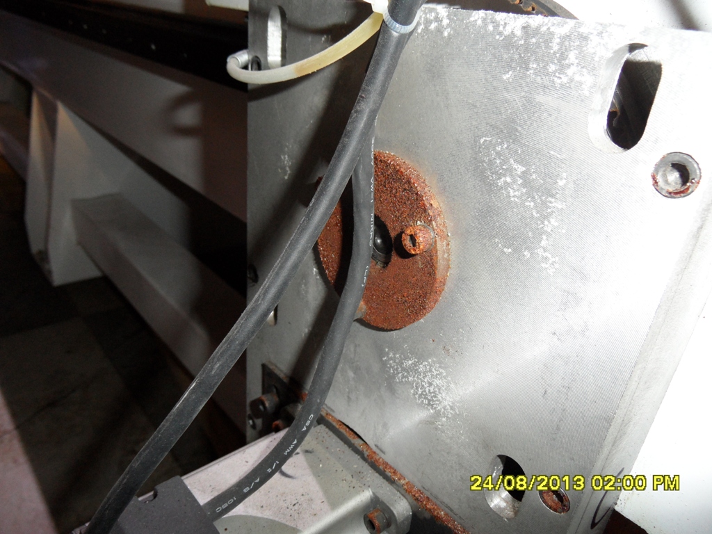 Ржавчина везде на напрвляющих даже в полуавтоматическом шпинделе внутри.Дальше был процесс запуска.Ну тут вообще весело.На моих станках :оборван редуктор на поворотной оси ,трансформатор в ящике управления оборван и весом в 30 кг прыгал в нем всю дорогу,ну остальные мелочи я не считаю такие как порваные ремни,недокомплект и прочее.Рядом со всем остальным это точно мелочи.