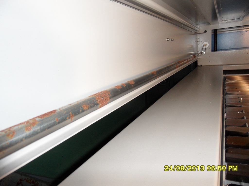 Были снова жаркие споры,уговоры,угрозы,но ничего не помогало на все был ответ крутитесь как хотите на нас не расчитывайте.Пришлось покупать новую трубку (40000 руб),перематывать трансформатор,покупать датчик протока воды,которого просто не было,новые линзы и зеркала которые поржавели,ремонтировать редуктор и отскабливать ржавчину.