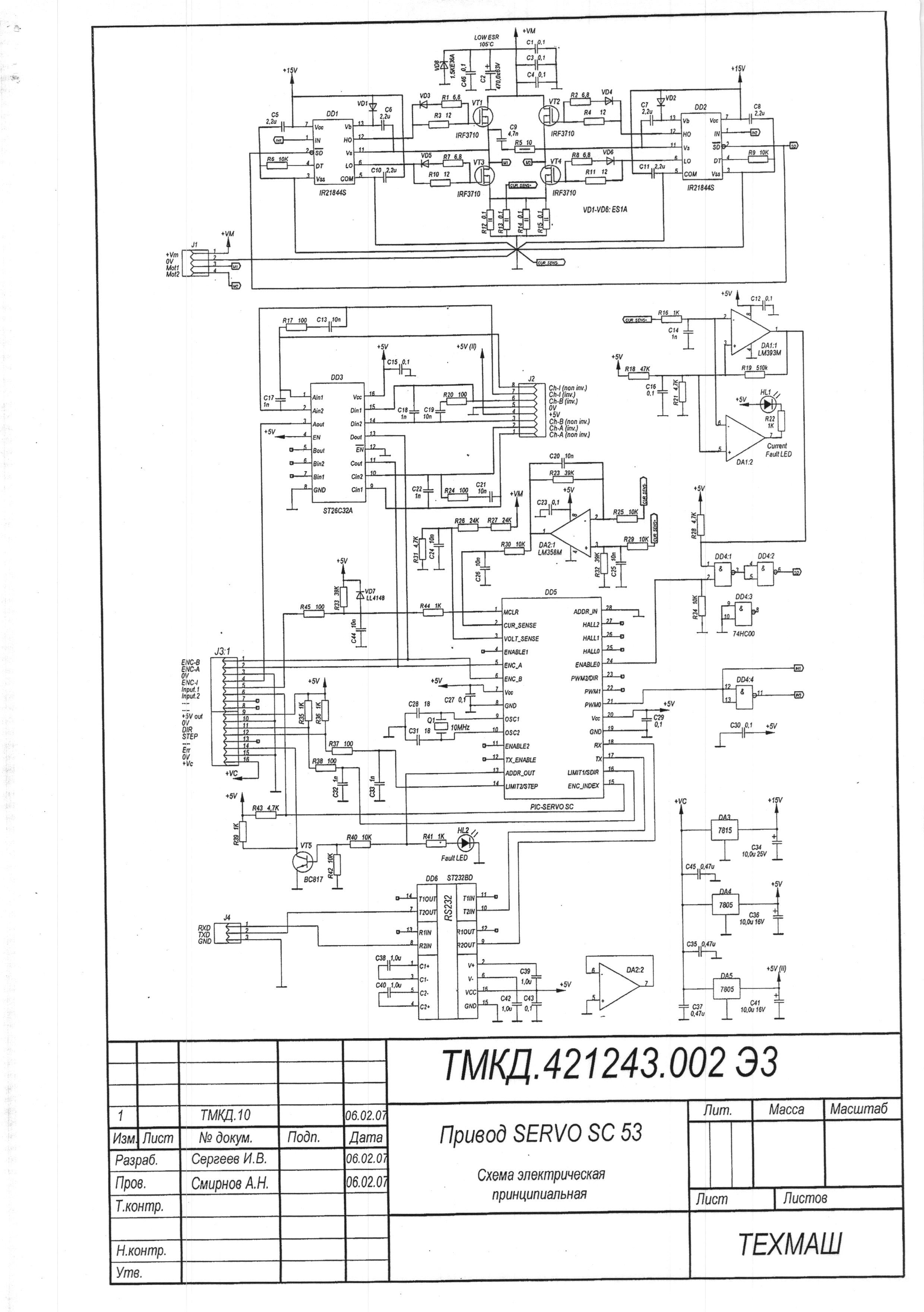 Спасибо что откликнулись. Механической балансировки никакой, ни пружины, ни противовеса. Ось Z через редуктор поднимается или опускается двигателем постоянного тока. Вес резака приблизительно 20 кг. Прикладываю схему драйвера. (хотя она почти ничего не дает). Играясь с параметрами П, И, Д(утилитка NMCTest.exe) драйвера устраняю вибрацию двигателя. И вижу движение неравномерными рывками. Причем рывки вниз гораздо заметнее. Лезть пришлось т.к. вышел из строя енкодер (был 256 импульсов на оборот, стал 1000)