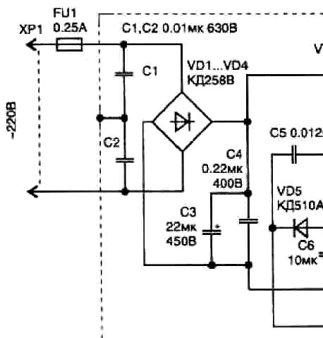 На этой первой попашейся схеме это С1 и С2, соединены с "землёй". На корпусе они дают половину питающего напряжения, то есть 110 вольт, поэтому заземление обязательно.