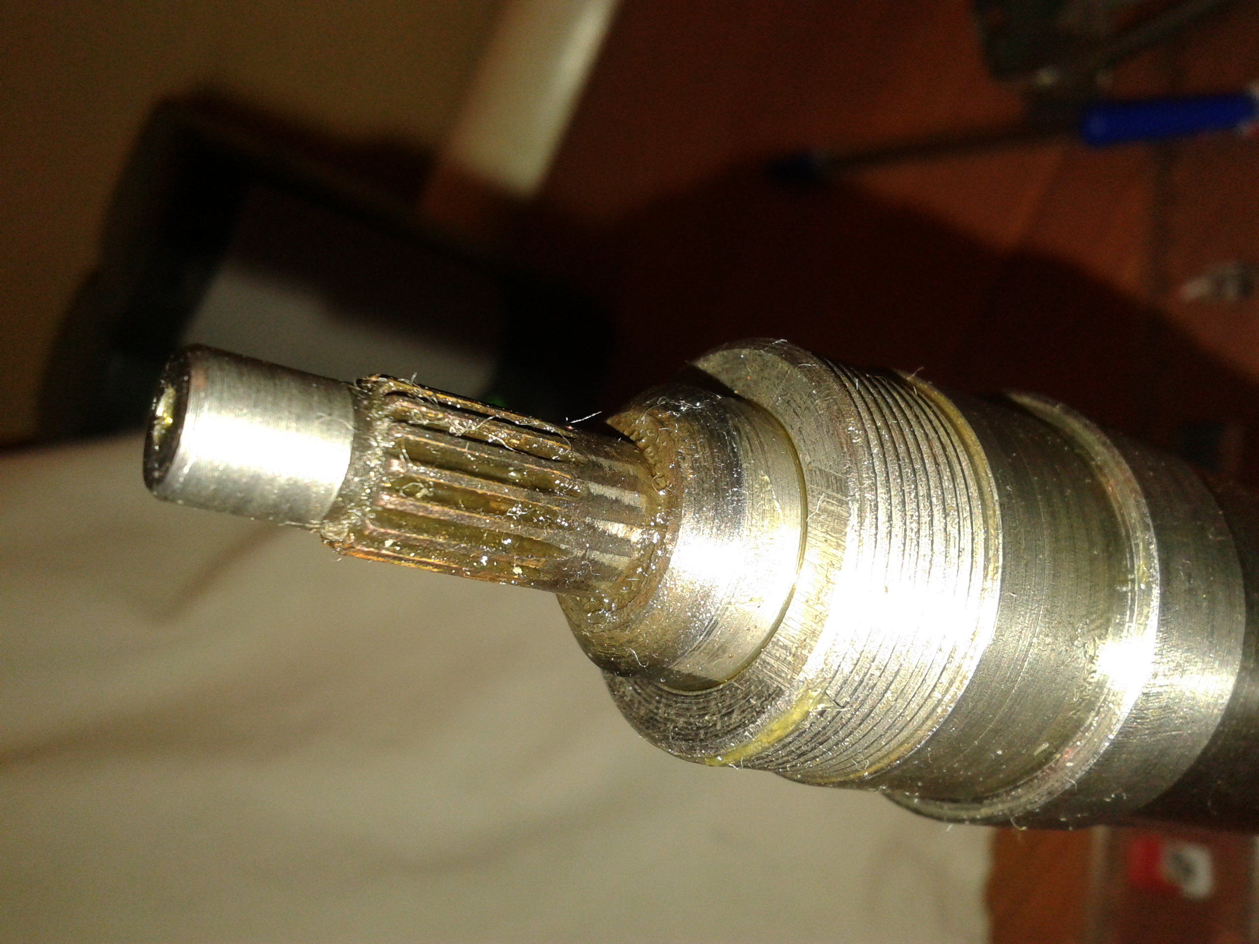 4. как вставлена деталь сзади? это явно часть редуктора и хотел бы ее снять. у тонкого стержня есть небольшой продольный и поперечный люфт. зажал в тиски, дернул - никак. следов крепления на шпинделе нет.