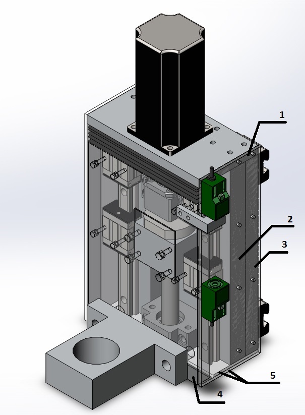 А не лучше было бы рельсы с позицией №2 прикрутить к позиции №4, а каретки прикрутить к позиции №3. Ато у позиции №4 вылет вниз (на конце которого кстати крепление шпинделя) практически в половину длины и жесткость только за счет толщины плиты.