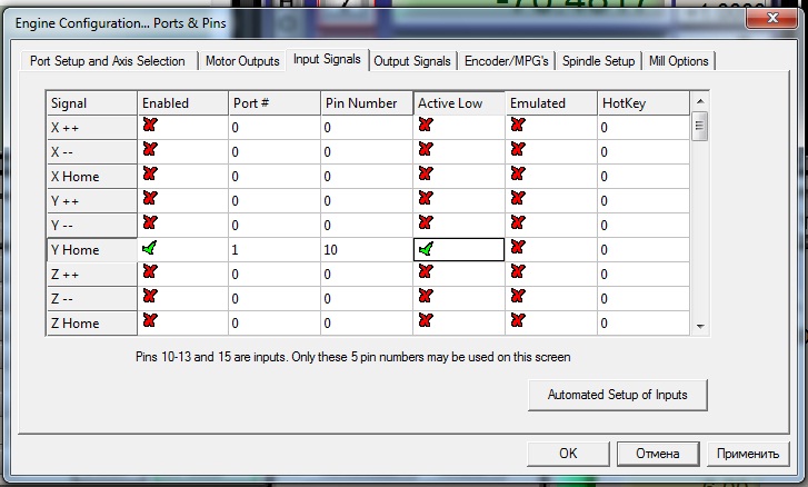 Теперь выложи распиновку LPT контроллера и скриншот настройки твоих лимитов.