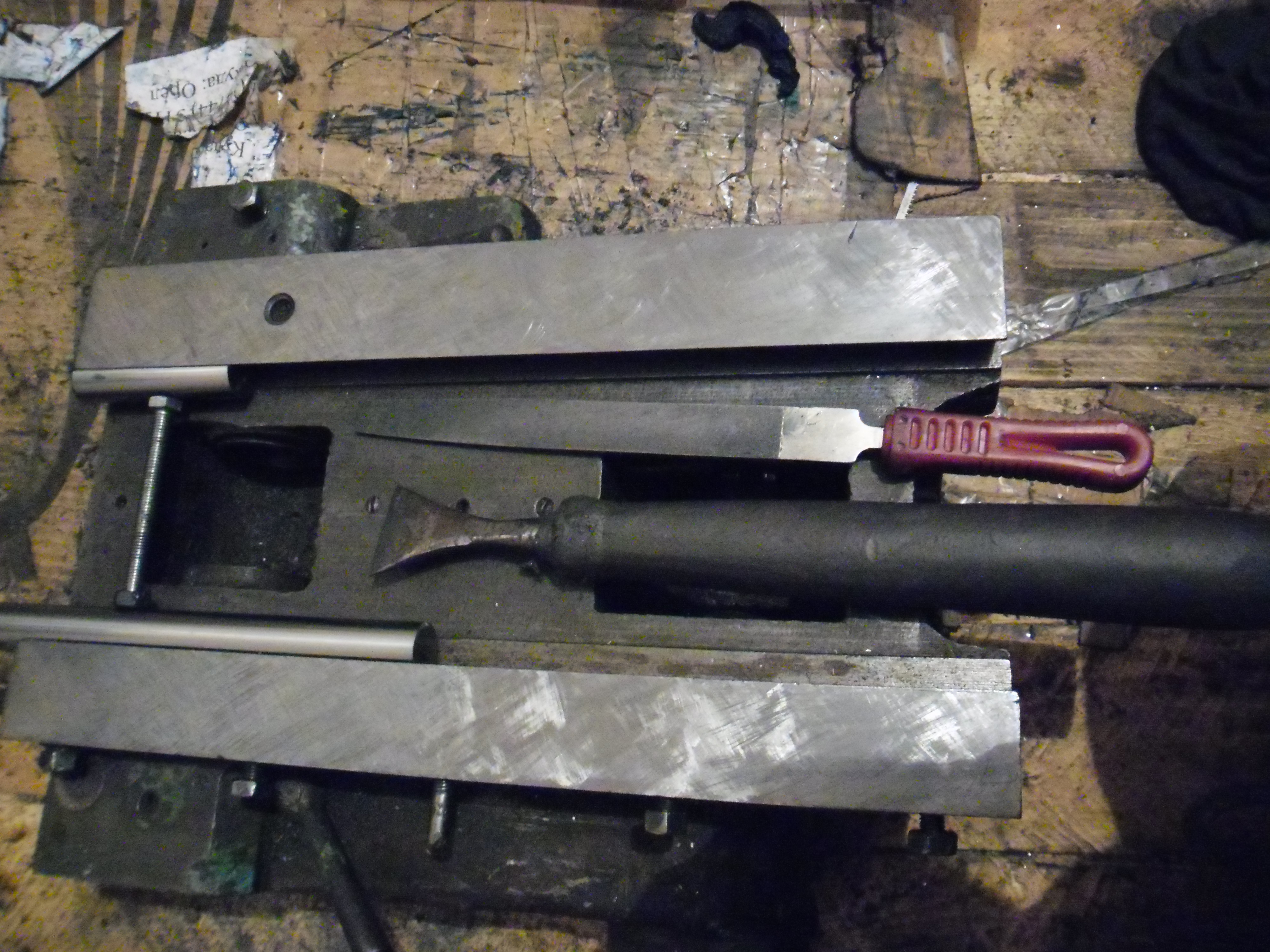 как шабер кованная стамеска, правил алмазным напильником .кромка садится в считанные секунды но грызет чугун с хрустом