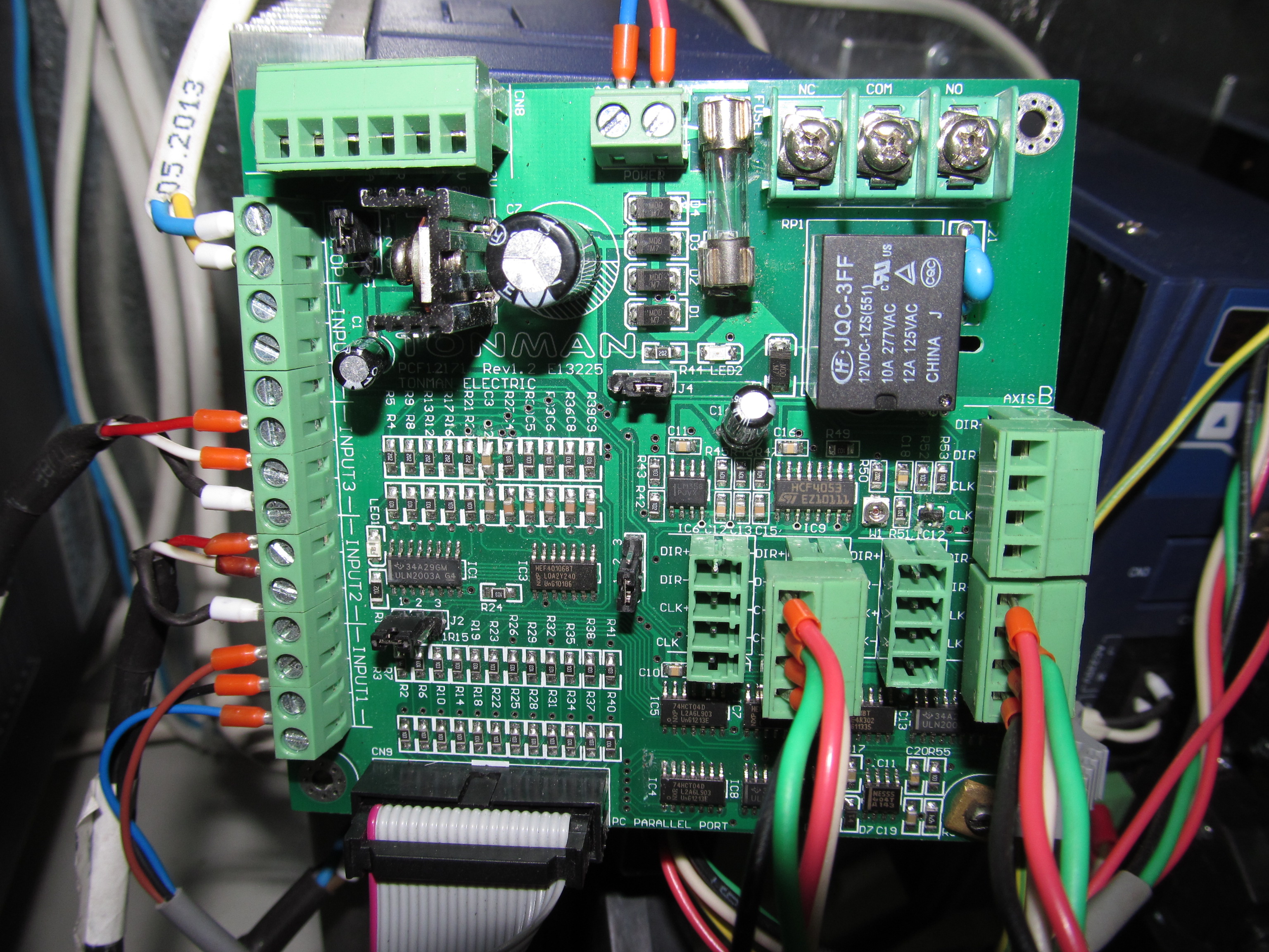 Дальше мультиметр в дело пошел. LPT-выдает сигнал правильно, т.е. при нажатии кнопок движения Dir меняется с 0 до 4 с хвостиком В. Проверил приходит ли сигнал на плату - да приходит.
