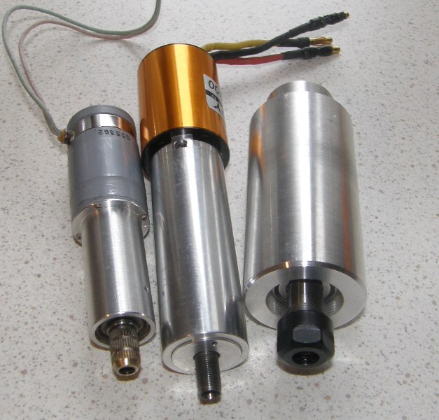 Эх... Planet-CNC, он сам рулит приводом, в оутах есть поддержка RC контроллеров, включает, отключает, регулирует обороты, в оболочке и в УП. Шпиндельки под цанги от Proxxon, максимальные обороты где то 20000, при 24 вольтах.