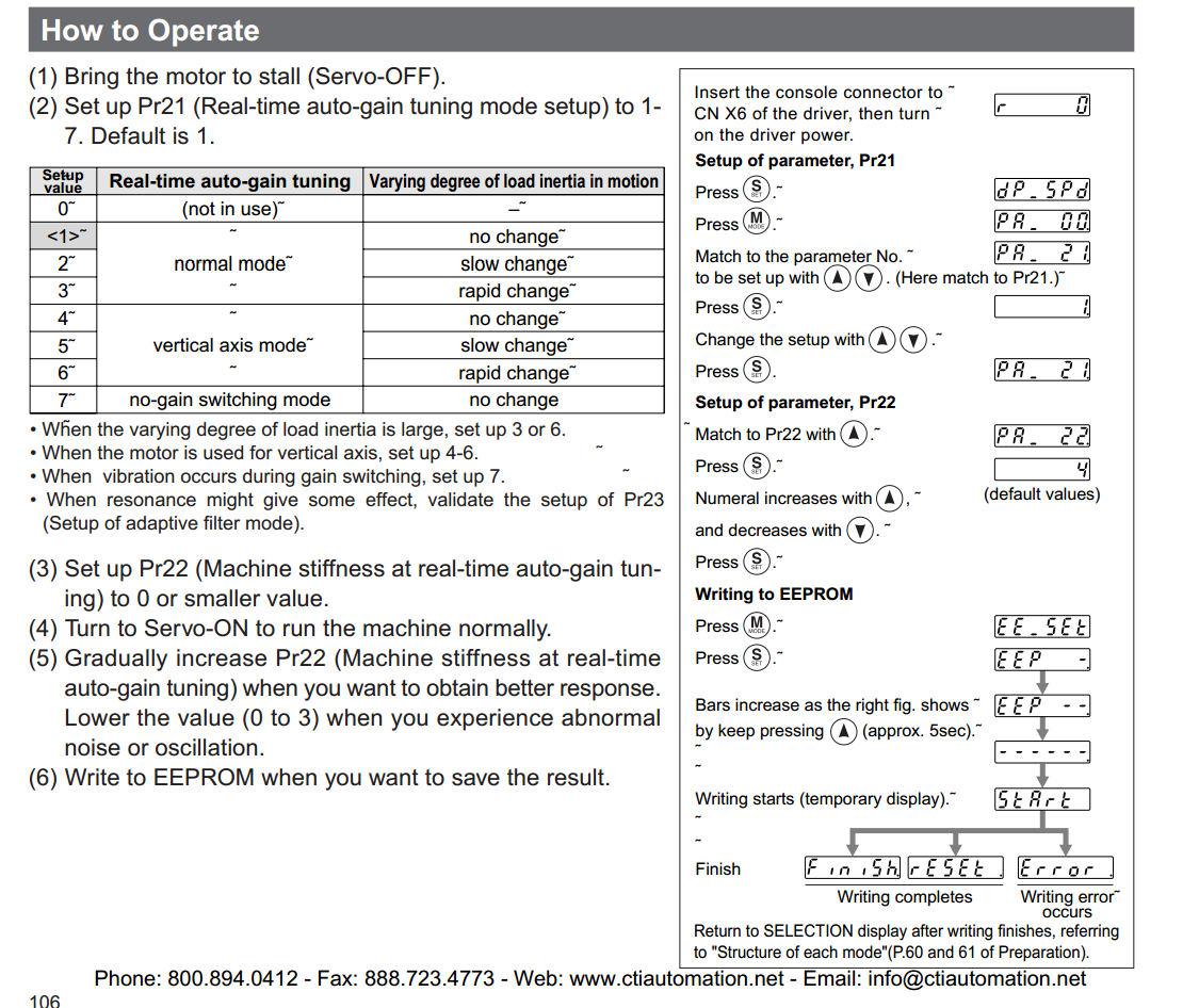 Имеется фрезерный станок с приводами Panasonic MINAS A4 Series. Можно ли задавать вращение шаговыми двигателями напрямую с панели этих приводов? (аналогично частотным приводам асинхронных двигателей). Если можно, то как это сделать? Руководство на MINAS A4 Series нашел, но на английском языке. Методом тыка боюсь сбить настройки или спалить привод.