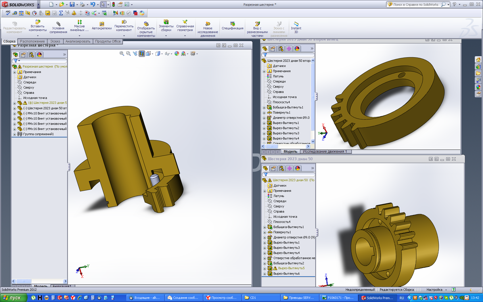 По поводу разрезной шестерни - на картине слева шестерня в сборе, справа сверху - дополнительный венец, справа внизу - основной венец.