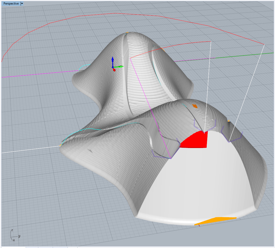 3) RhinoCAM - модель и сетка совмещаются идеально, УП создается, но гравер позиционируется не перпендикулярно плоскости поверхности модели, а перпендикулярно оси вращения, тем самым уничтожая заготовку при обработке.