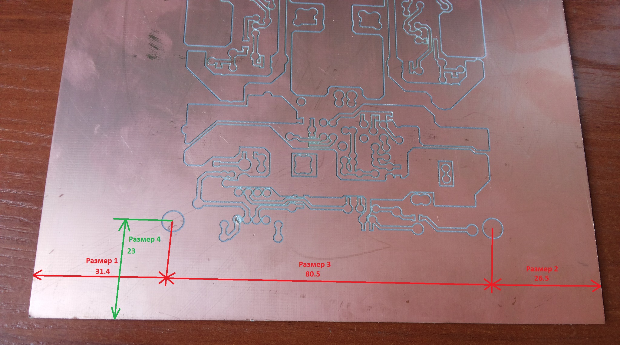 9. Перевернув плату получаем так же смещение относительно краев заготовки, но на другую величину: