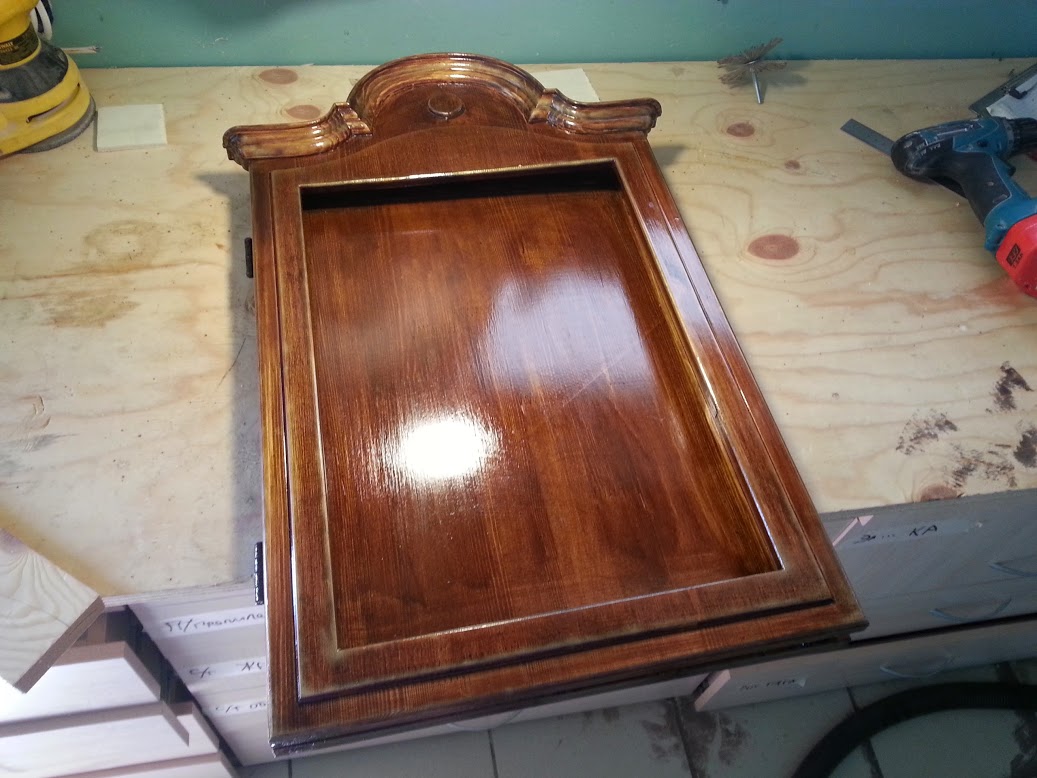С учетом того, что фасадов 8 штук, то с третьего они идут уже на автомате. 2 минуты на установку и 30 минут на фрезерование. "На глаз" выходит достаточно точно, примерно в пол десятки, граница снимается двумя махами 150 шкурки (на сосне).