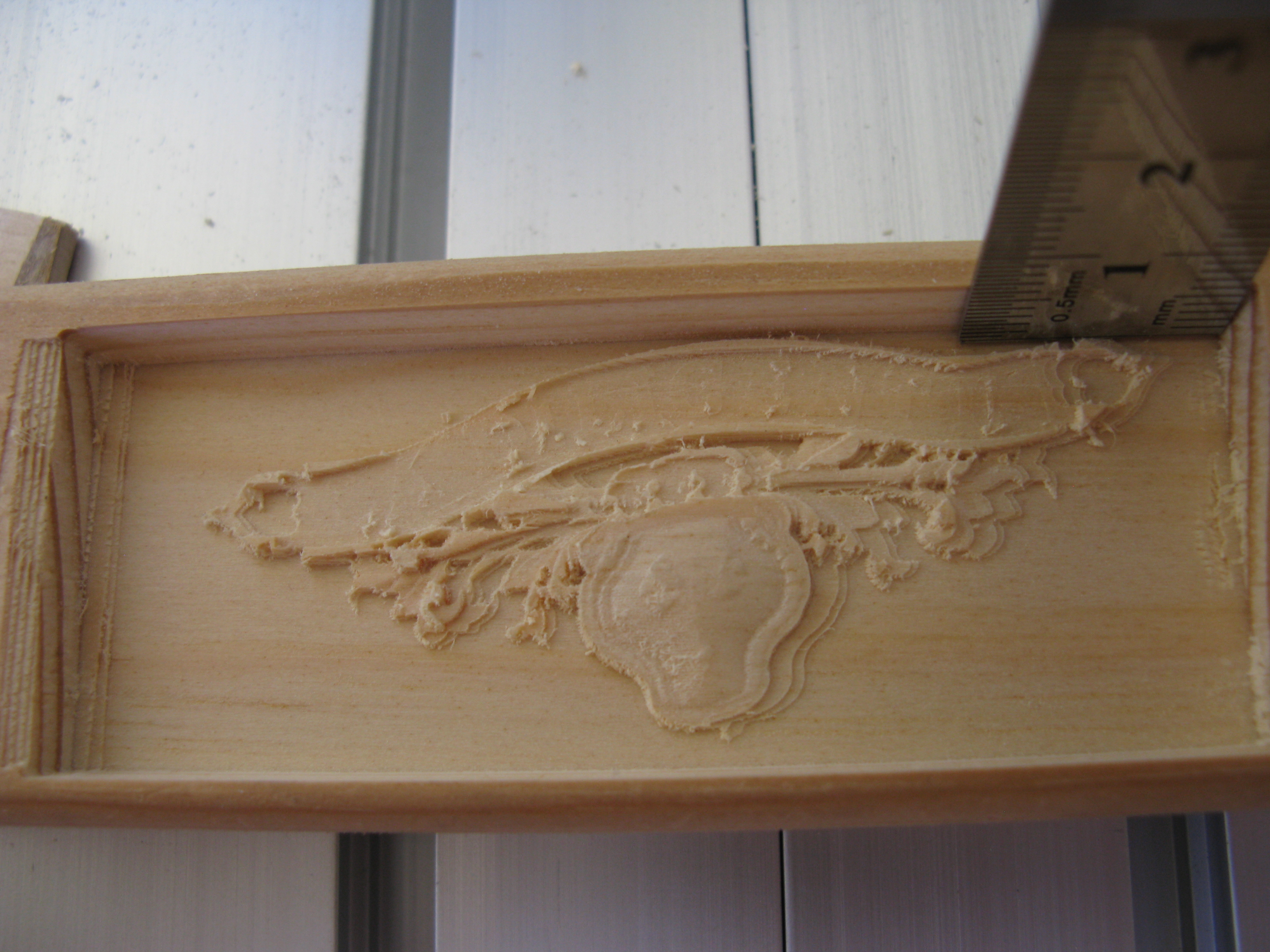 В свободное время занимаюсь судомоделизмом с нуля. Для этих целей купил CNC-3040 4-х осевой. С ЧПУ, ArtCan, Mach не знаком. Это первый опыт любви. К станку купил отдельный комп. Установлена чистая XP (подготовлена по инструкции, см. вложенный файлик) и лицензионная русифицированная Mach-3. Mach настроен по инструкции производителя станка. Создал рельеф размерами 30х80 мм и высотой 3 мм в ArtCam и УП на другом компе.(расширение файлов не позволяет их добавить здесь, вот ссылка: http://yadi.sk/d/nLkUhoCfQUqy4 ). Так как это первый опыт, то установил все минимальные скорости, ну по моему мнению. Гравер для всей работы использовал 0,2 мм 10 градусов. Глубина врезания-0,2мм. Через 35 часов с копейками получил результат. И сразу куча вопросов. Где я допустил ошибки?