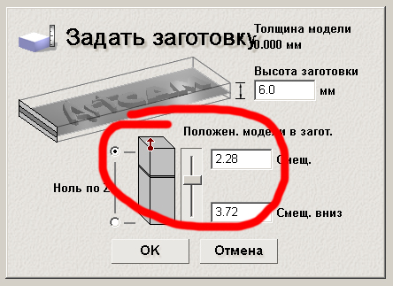sergey27rus писал(а):Выбор материала/заготовка в арткаме задан неправильно, вернее положение нулевой точки, там есть ползунок смещение, к примеру вы задали в уп толщина материала 6мм, а нулевая точка сверху, то отсюда и вылезла ваша ошибка.