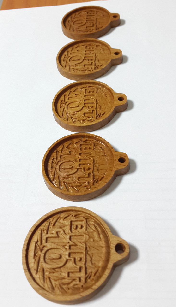 Медальки, сделаны товарищу на юбилей его сайта. Бук, диаметр около 5 см.