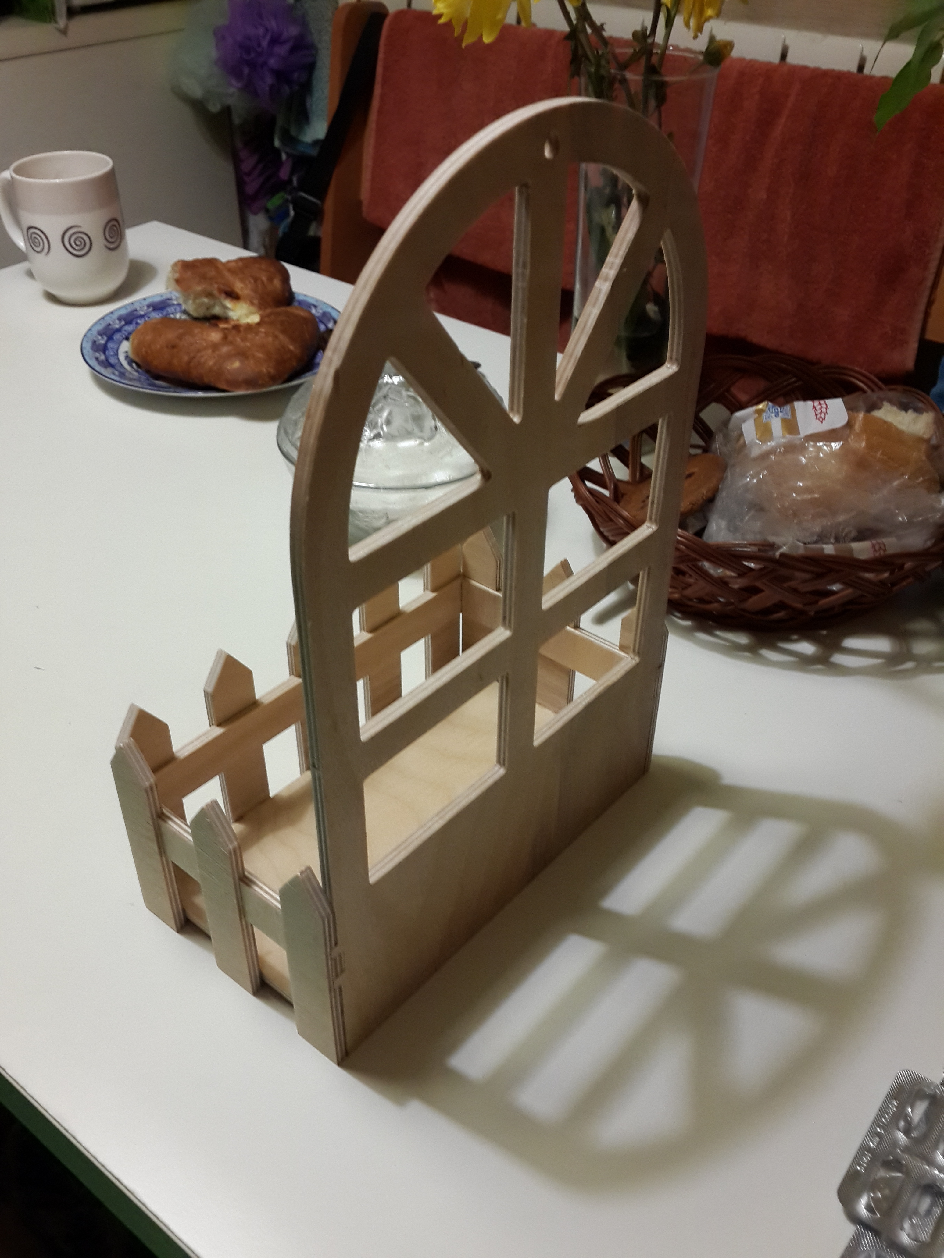 Полочка-подставка для цветов, стаканов и т.п. Может висеть на стене или стоять на поверхности :) Сделана самостоятельно по мотивам китайских полочек на Алиэкспрессе :) Фанера 6мм, ширина 180 мм, высота 280 мм, глубина 100 мм.