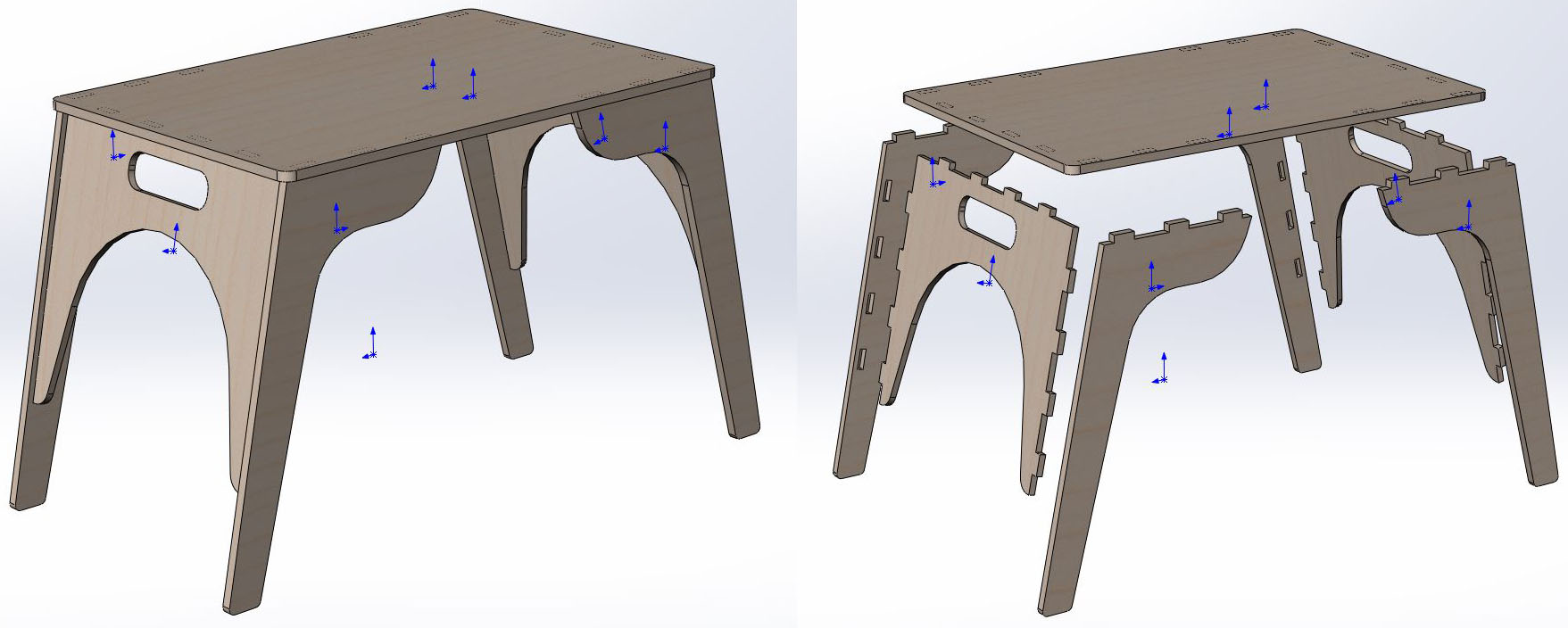 Столешница и ножки - фанера 8 мм, боковины - фанера 6 мм.