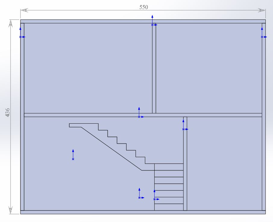 Да, будет небольшой двухэтажный. Из-за ограниченности места дома ширина всего 55 см :) Планировку комнат прикидываю примерно такую: