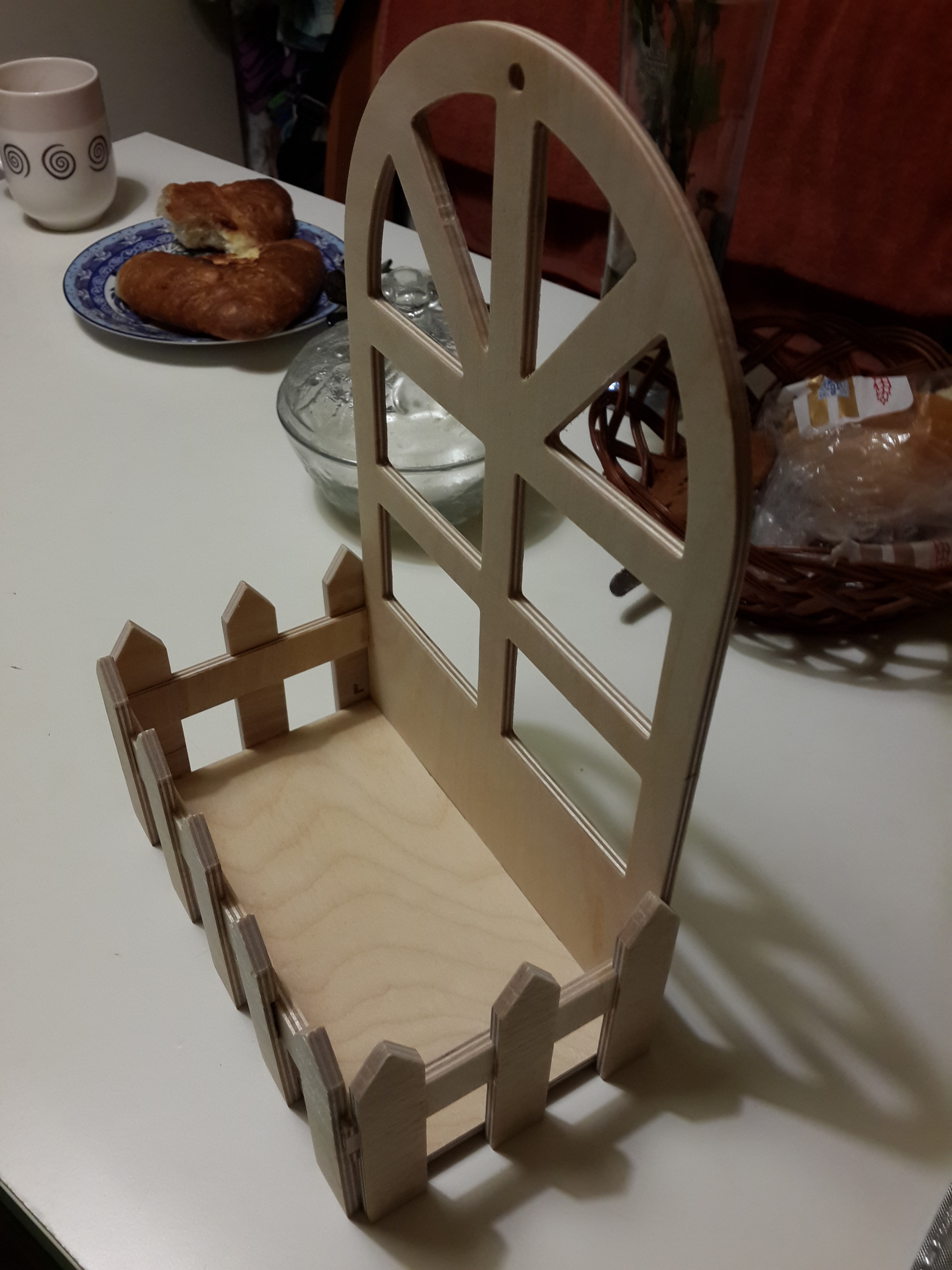 Это тоже банальность, но мне понравилось как она смотрится, да и размер у нее получился более впечатляющий, чем я ожидал. Вырезана из 4-мм фанеры. Есть файлы для VCarve, подготовленные для этой фанеры. Что бы не дорабатывать внутренние углы напильником, наделал в VCarve в углах вырезы (Fillets). Фанеру после резания слегка отшлифовал шкуркой и прогрунтовал. Жена довольна