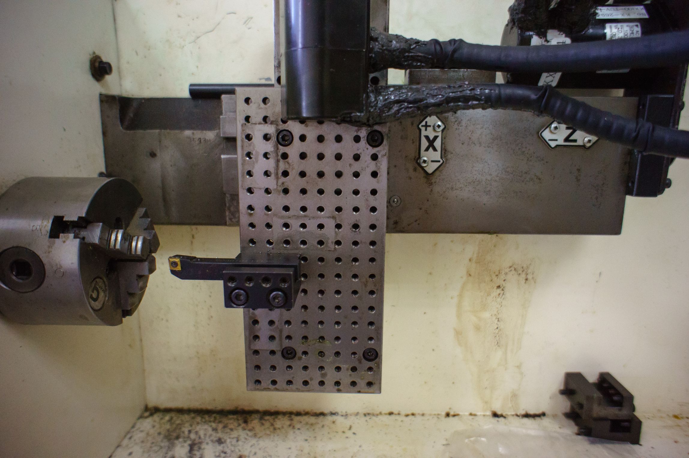 Вот небольшое видео "первой стружки" после установки серв. Обработка латунного фитинга. Выполнено 10 проходов по 0,1мм со скоростью 200мм/мин. Скорость холостых перемещений по G0 - 5800 мм/мин.