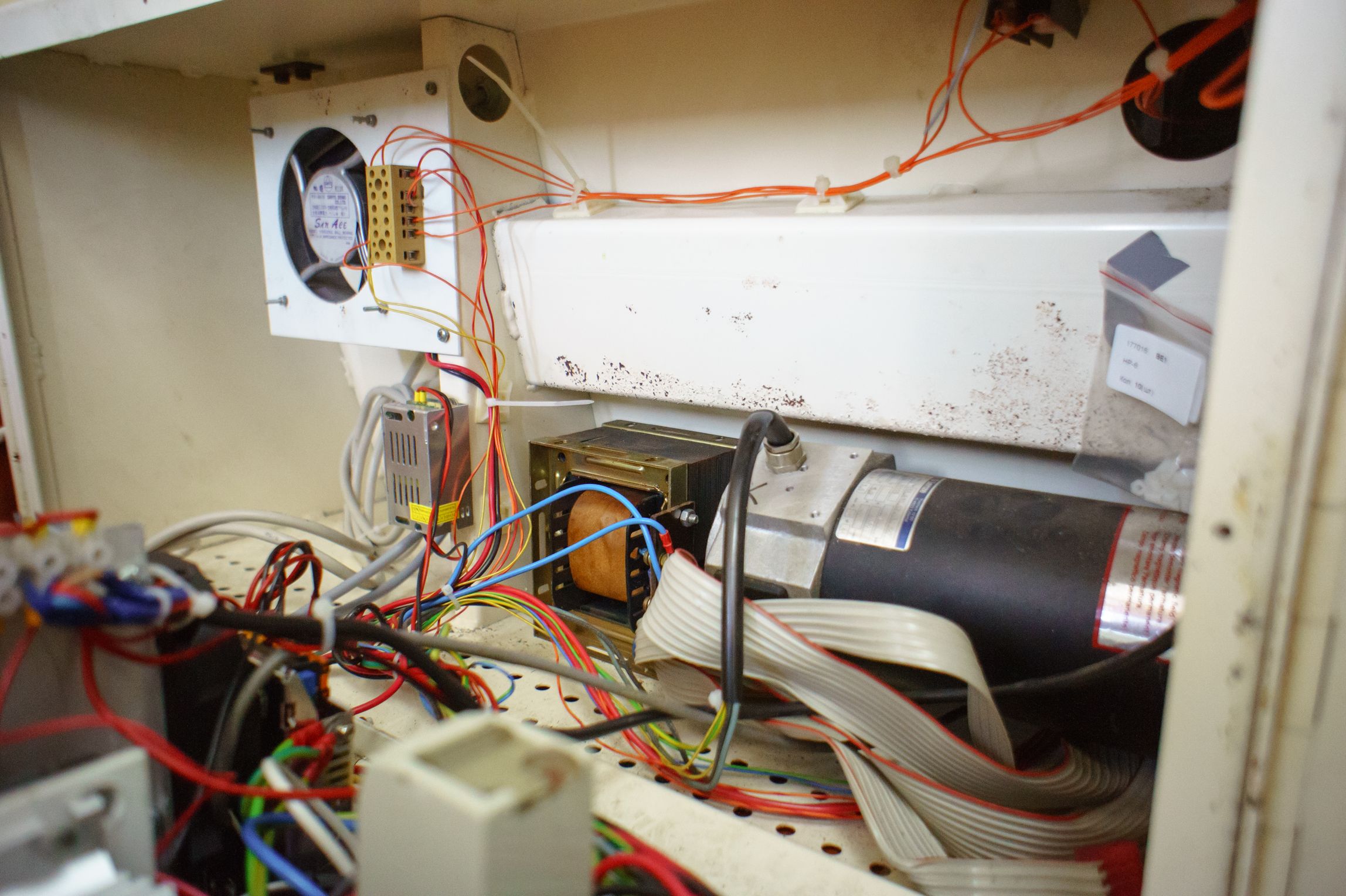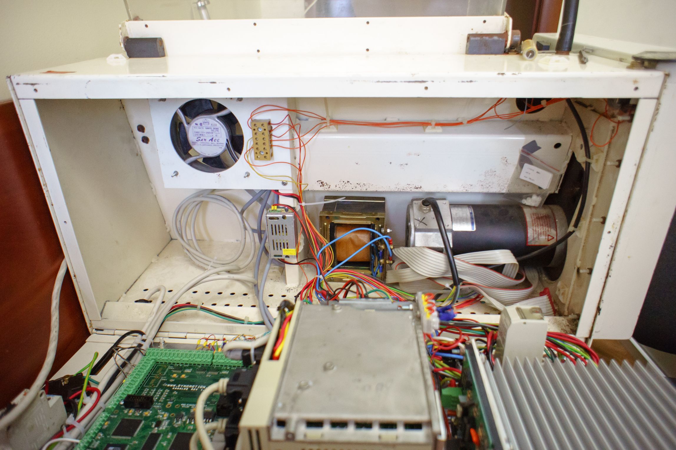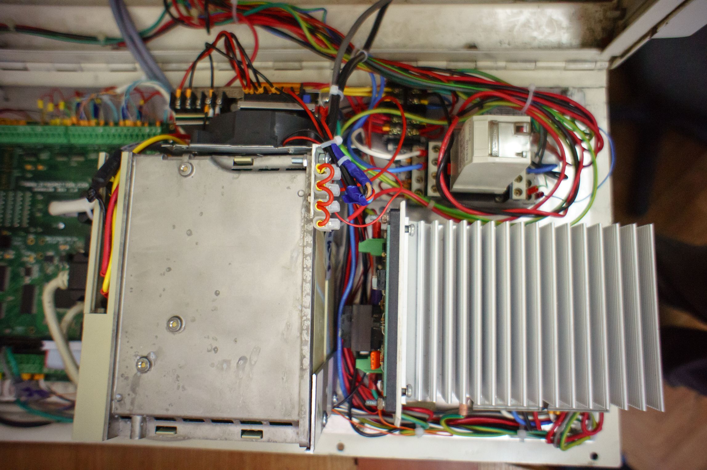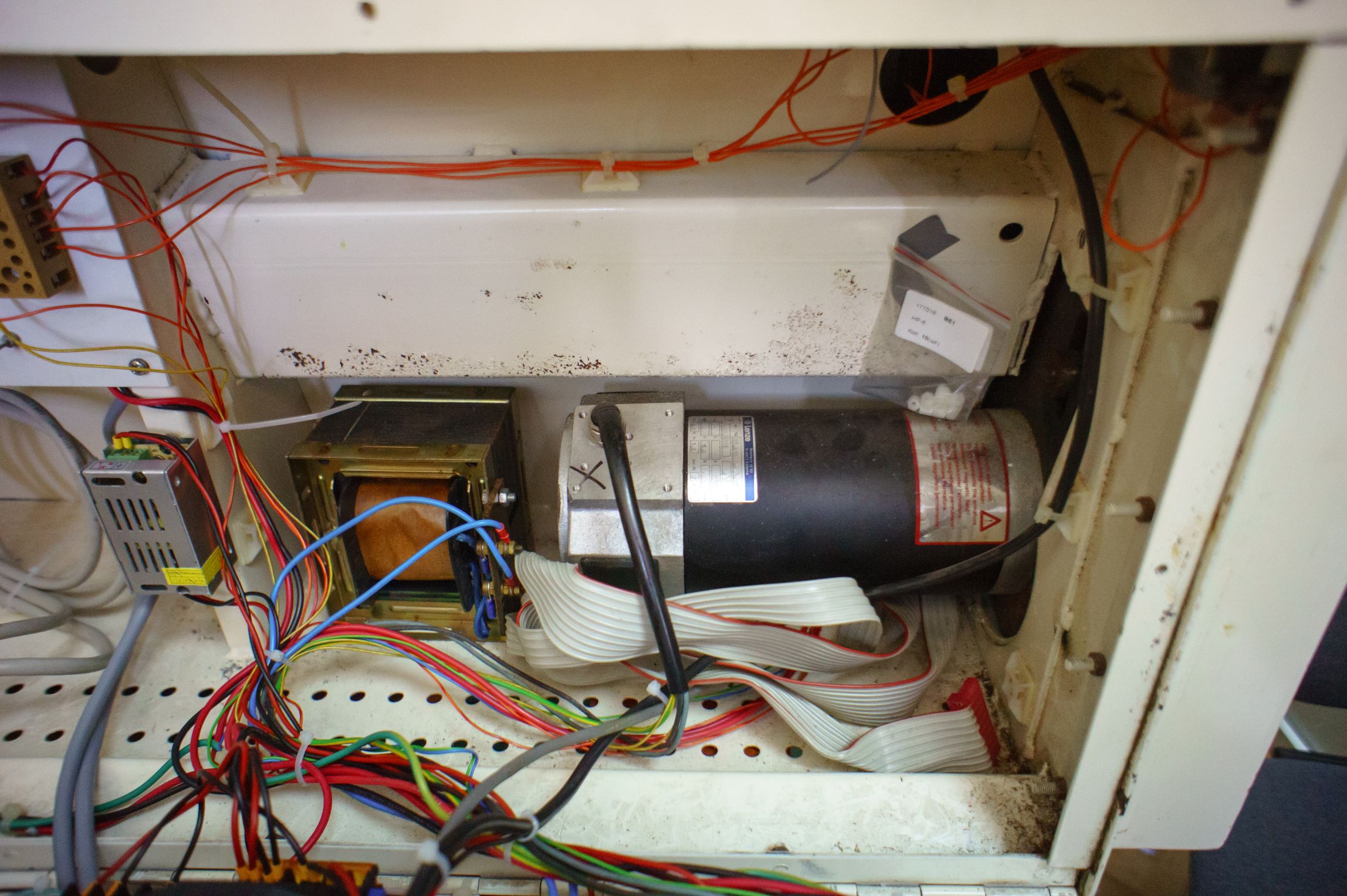 Да, коллекторная серва. Шпиндель в такой, заводской, конфигурации может только вращаться в ту или иную сторону. Без позиционирования. Энкодер, диск с отверстиями (100 шт), для измерения скорости и возможности нарезания резьб. Сейчас не используется.