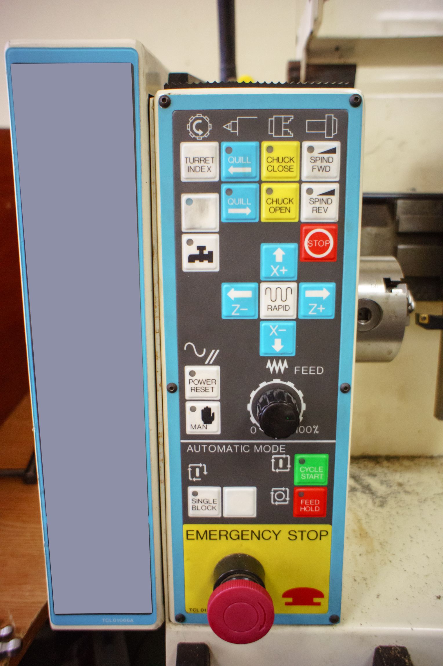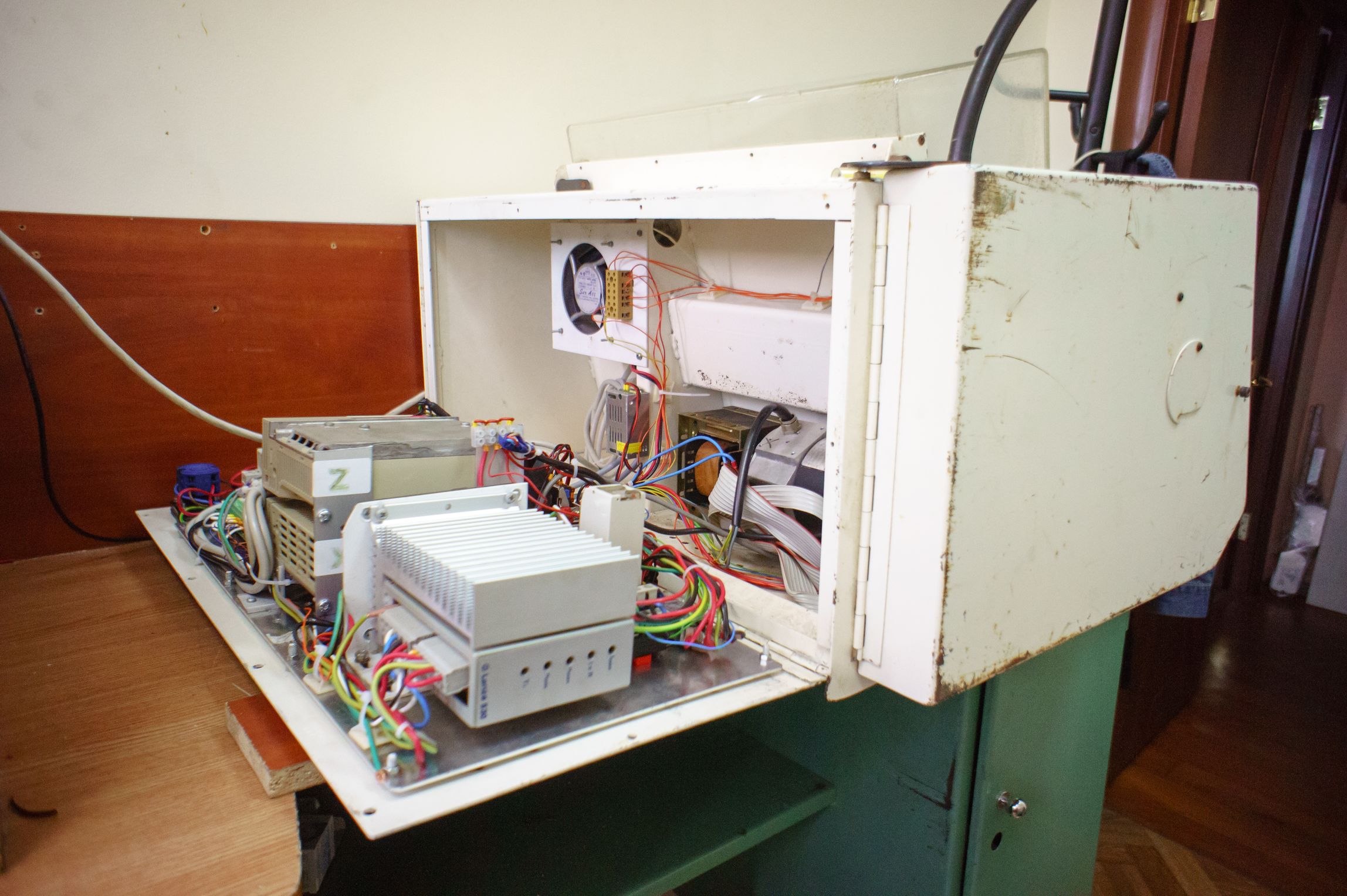 Пока, что реализовано: управление шпинделем по М кодам, аварийная защита на открытие крышек и кнопку ЕСтоп, активация серв с Кфлопа, ну движение осей само собой.