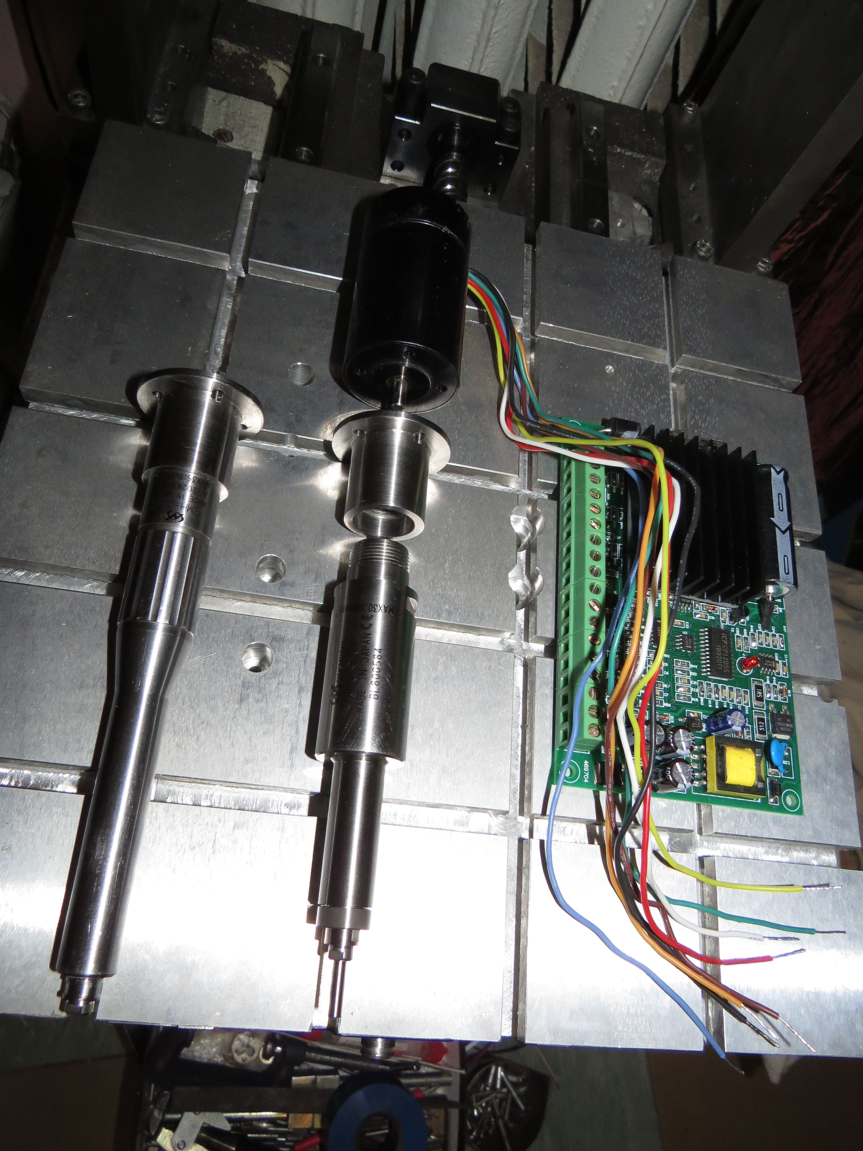 Купили 2 станка с пневмо шпинделемя (номинал: 8 очков, 50000 об/м, мощность 0,041 кв) для фрезерования по стеклотекстолиту z-0.2, F650-700.