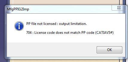 Может кто сможет подсказать? Подправил пост через IMS 7.4p (добавил что бы выводило 4ре знака после запятой). А после того как делаю G код в CAtia V5R21 программа обрезана и ругается что PP file not licensed : output limitation. 704 : License code does not match PP code (CATIAV5#). IMS крякнут.