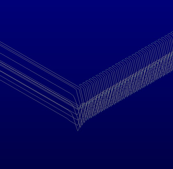 Доброго времени суток всем. Заранее прошу прощения за возможные глупости в тексте - станок увидел первый раз две недели назад, даже не новичок, скорее КМБ. При гравировке рвется рисунок по оси Х. Объяснить трудно, проще показать на примере. Прямоугольник, канавка 5х7 мм, сделан в арткаме, траектория обработка рельефа-выбранные вектора, постпроцессор NC-Studio Arc, конический гравер. Вот скрин симуляции в NC-Studio: