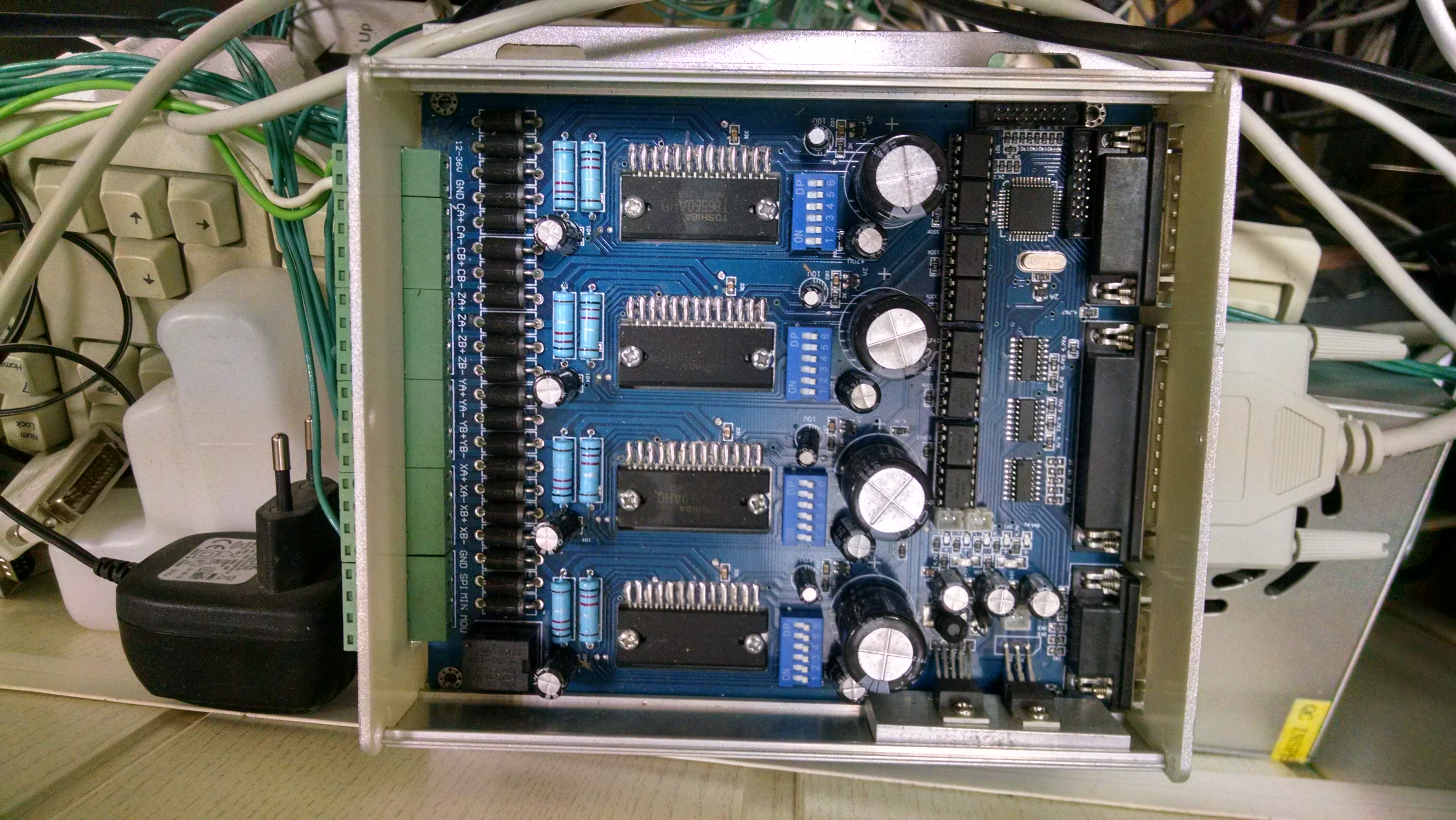 добрые день уважаемые форумчане, я новичек в ЧПУ, хочется собрать домашний станочек, многое куплено, в частности плата HY-TB4DV-T, стоит на ноутбуке МАЧ3, но вот настроить его я ни как не могу! по мануалу http://www.thanksbuyer.com/download/TB6600HG.pdf все делал, но движки не двигаются, причем плата себя как то ведет странно, при нажатии кнопок на ноутбуке, светодиоды которые как я понимаю сигнализируют сигнал одиночный на движение в ту или иную сторону, при кратковременном нажатии зажигаются постоянно пока не нажмеш кнопку в другую сторону, двигатели при этом не двигается. если загружать ноут с включенной платой то видимо драйвера "открываются" и двигатели начинают "шипеть", сдвинуть руками вал невозможно, как только загружается система и драйвера они "отпускаются", пробовал на на разных ноутбуках, разные кабели, уже просто от безысходности, ни чего сделать не могу, гугл что наверное естественно ни чем кроме мана не помог :(