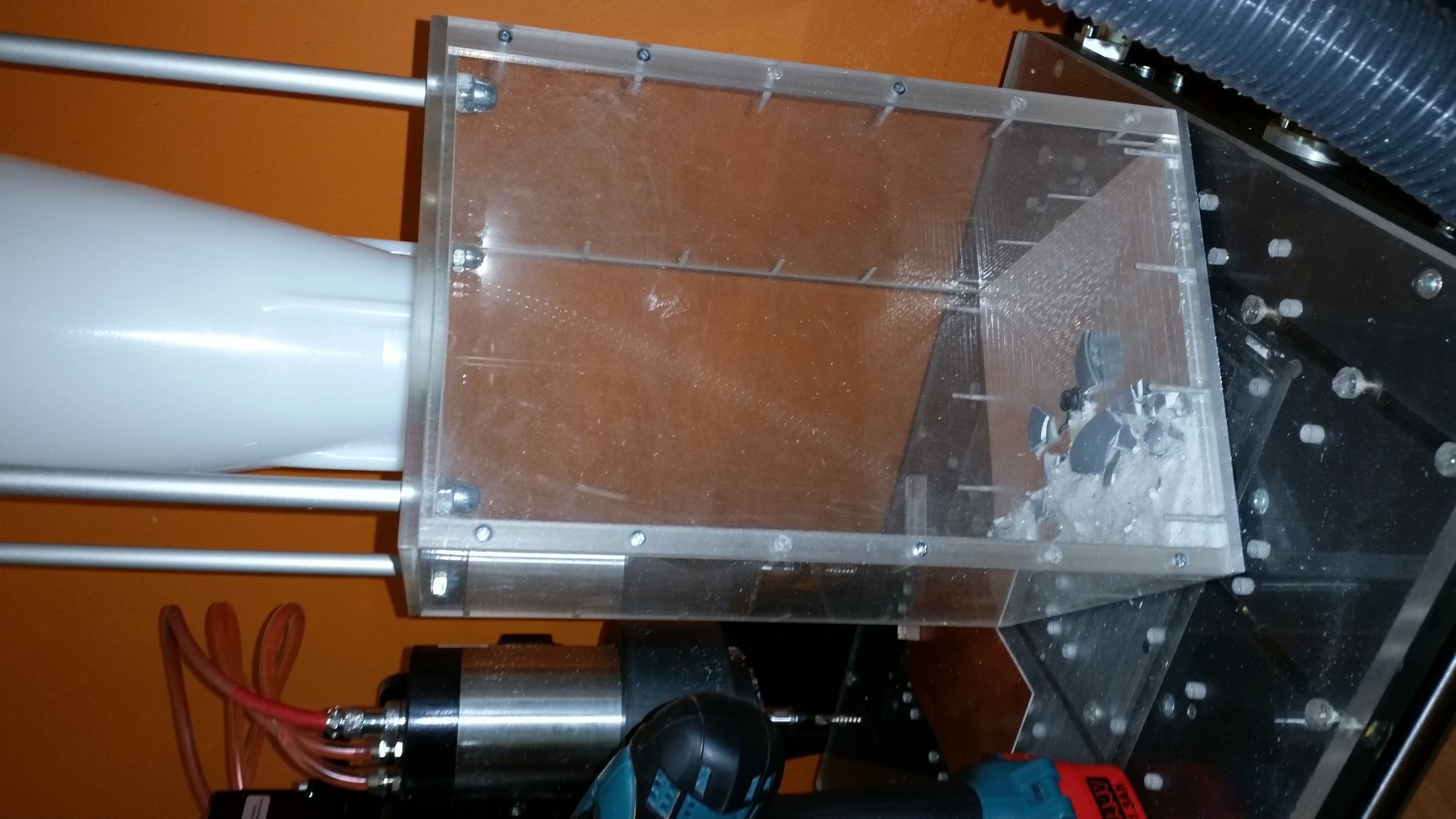 А2. Нет, что было под рукой - из того и сделал. Бюджеты не считал ибо хотелось посмотреть как это будет работать. А вообще бункер для стружки будет из чего по-проще. Или вообще мусорный бак, фланец предусматривает установку на что угодно, только отверстие делай соответствующее.