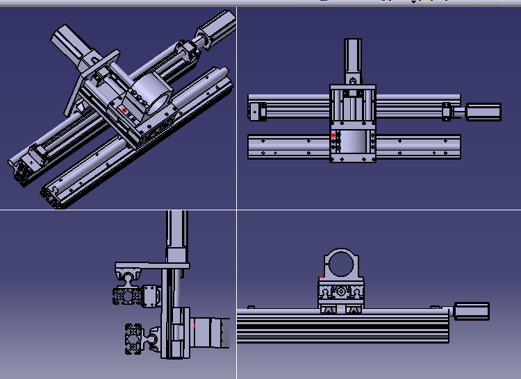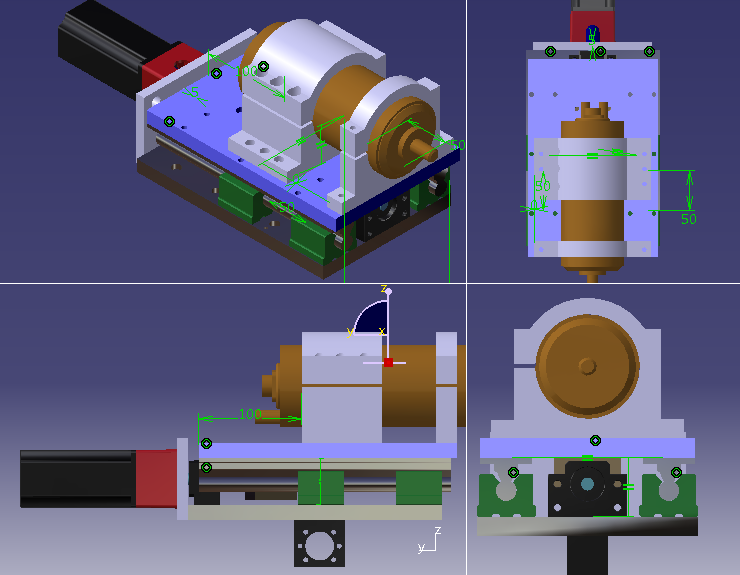 Из ваших советов кое-что начертил. Направляющие решил оставить на основной плате, но подвижную платформу уменьшил и добавил 4 каретки. Плату взял 15 мм алю. Я думаю, что крепление шпинделя довольно массивное и придаст жесткости. В этом варианте у меня больше хода по З.