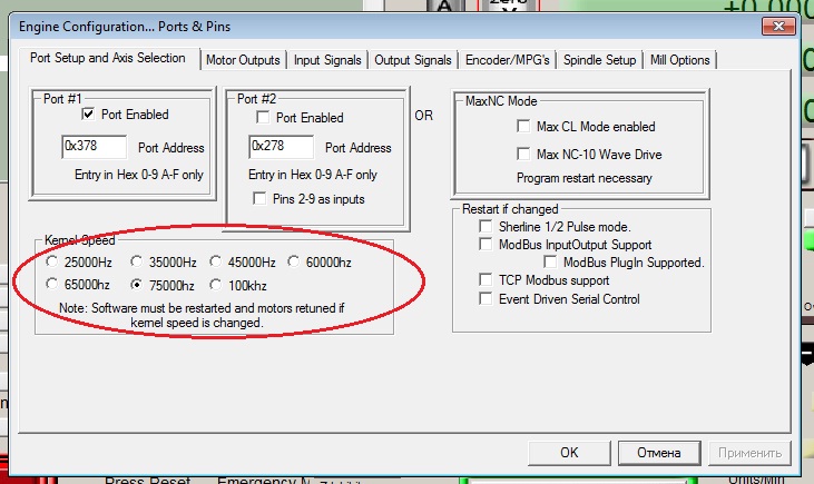 Сегодня заменил самопальные драйвера на DM442. Через про тюнер пока только настроил ток фаз, переключателями выставил микрошаг 3200, правда про тюнер при считывании с драйверов почему то показывает шаг 16. Steps per поставил 800 исходя из 1\16. Вроде все хорошо, двигатели работают намного тише и мягче, прогнал по X,Y 200мм, едет нужные 200. Но матч не дает выставить скорость выше 1875. Верхний предел Velocity 1875. При полушаге на самопальных драйверах Steps per ставил 100, предел Velocity был 15000 и станок без пропусков вытягивал 3000. Подскажите где копать.