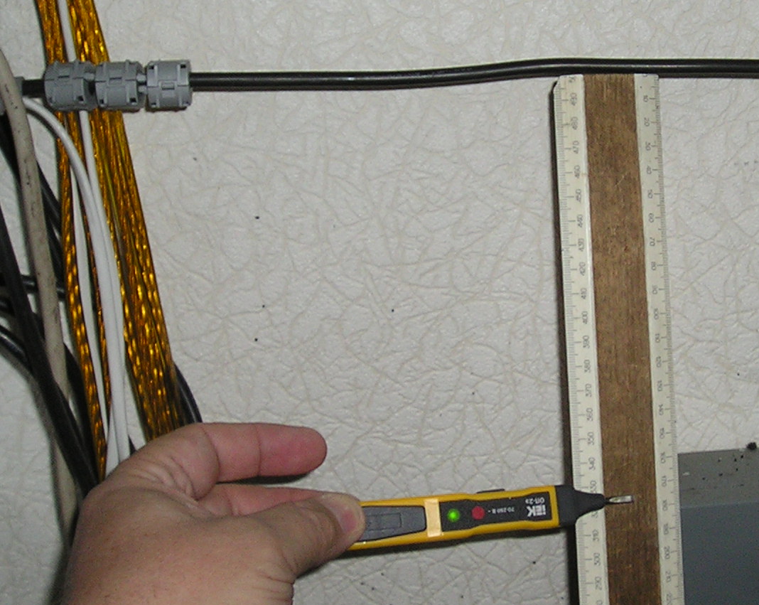 По линейке определяем расстояние, на котором происходит срабатывание. Где-то 160-170 мм от кабеля.