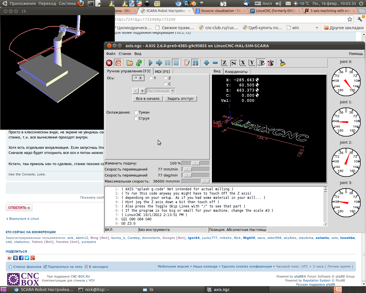 Хотя есть отдельная визуализация. Если запустишь linuxcnc, там найдешь в списке конфигураций scara - то там будет визуализация станка.