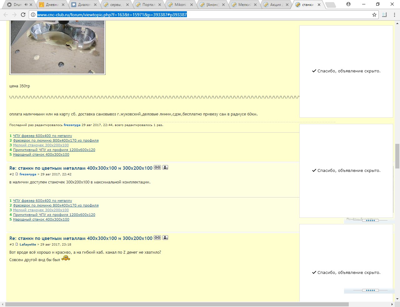 есть такое.... во многие темы даже не заглядываю... просто не хватает времени :( читаю когда бегаю меж станками, комп какраз меж ними стоит :)