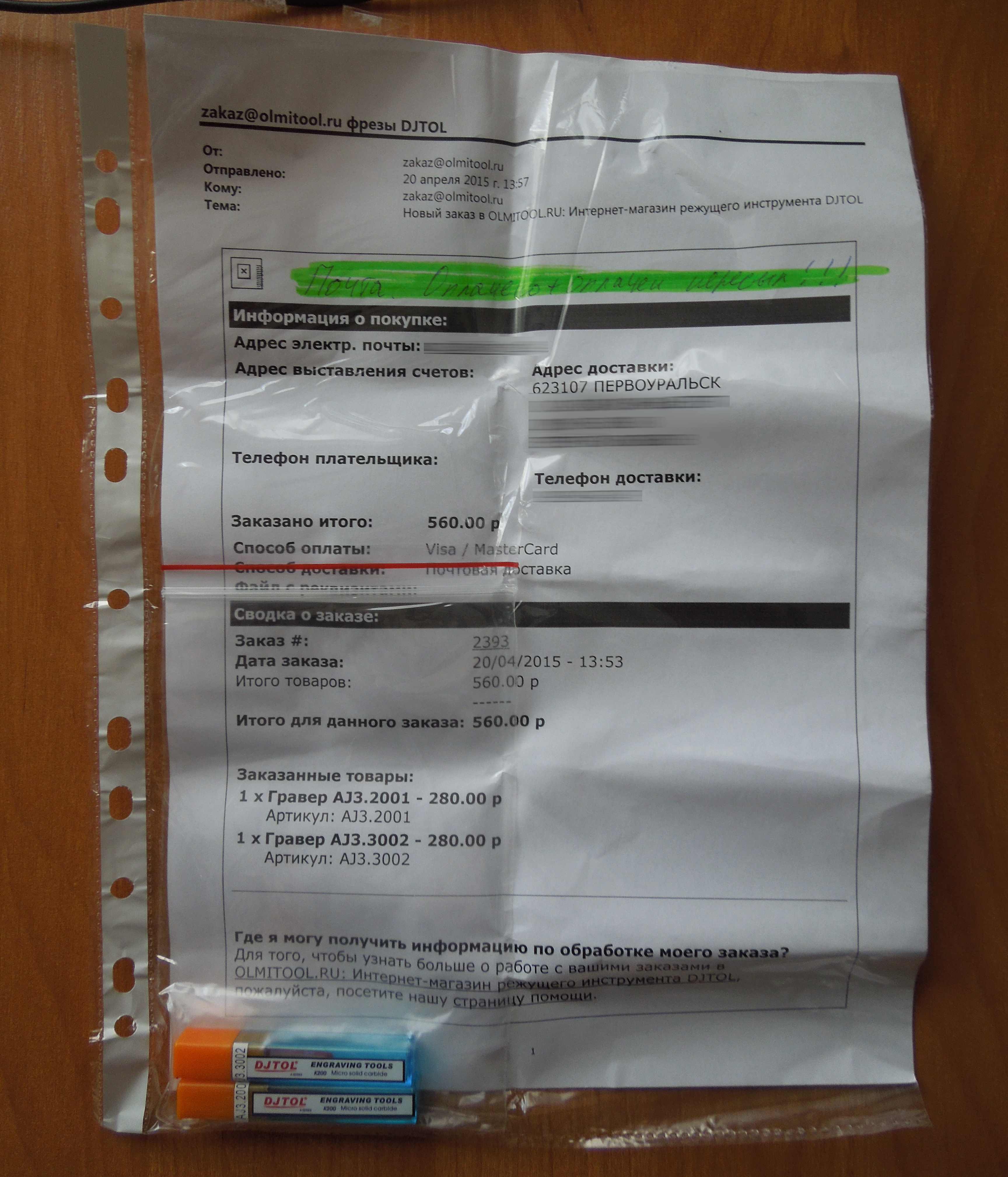 Спросил по почте о цене доставки почтой России - ответили быстро, в течении часа. Заказал 2 гравера - весь процесс (оформление заказа, выставление счета, оплата, отправка) также занял 1-2 часа. Приедут гравера - сравню с пурелогиковыми (есть один такой же) - тот же DJTOL или нет.