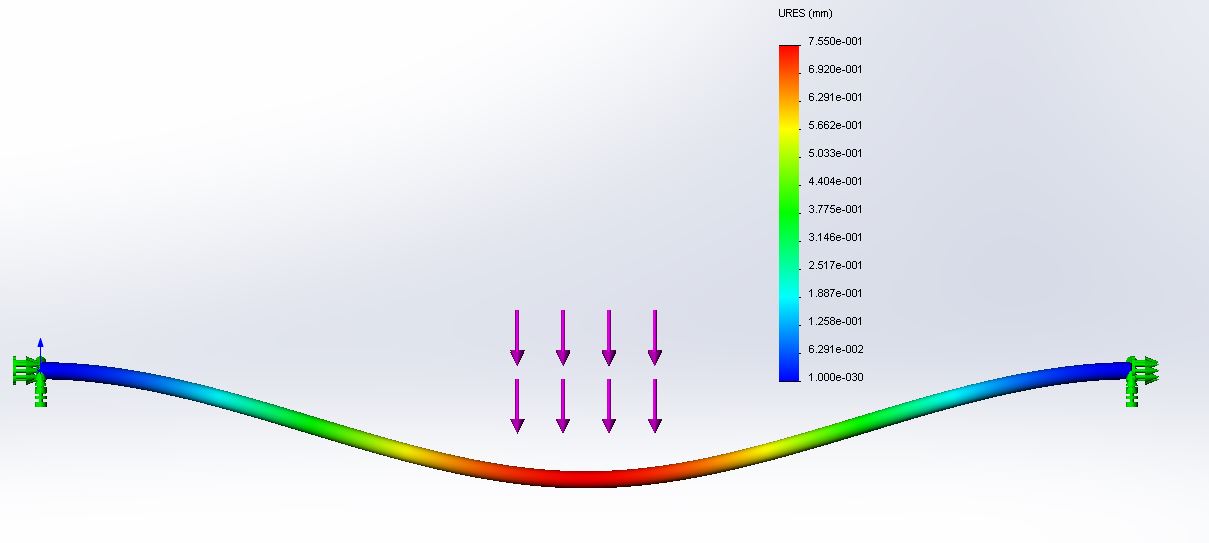 16й вал при нагрузке 10 кг в центре на базу 150мм дает 0,75мм прогиба