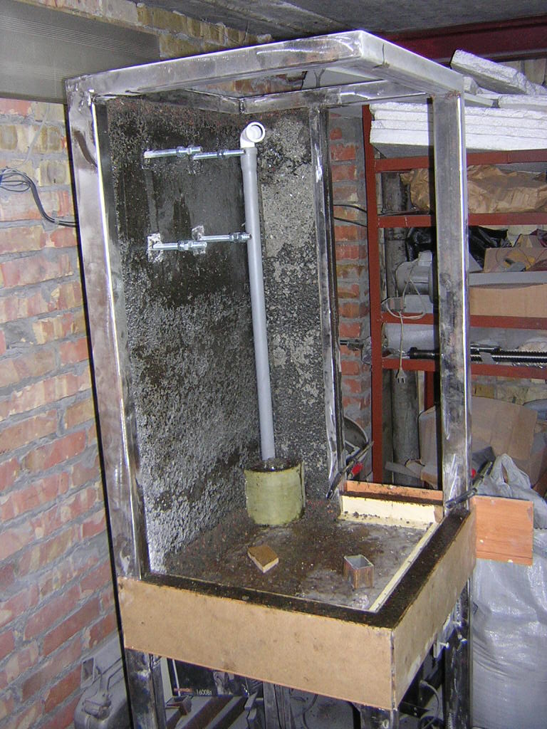 Посмотрим, там расход по алмазным кругам повышенный, слишком частые правки. И ещё окончательно не определился с кинематикой. Если шпиндель будет наклонный, то дело пойдёт. Сейчас как раз работа идет над своими перекрестно-роликовыми подшипниками. Если удастся сделать, то вопрос решен. Покупные не совсем годятся. Слишком много всяких переходных фланцев, что нагромождает конструкцию. Пространство довольно ограничено. Я когда-то делал новую станину с полимербетона под такой станок. Потом забросил. Делал из рассчета, чтоб прошла в балконную дверь. Уже не надо на балкон, там есть, но станину же не выкинешь лучше немного доработать по габаритам рабочего поля. После доработки завесит кило на 400-450, сейчас 220. Внутри все соединения труб имеют отверстия - переходы для засыпки песка внутрь каркаса. Вот немного фоток
