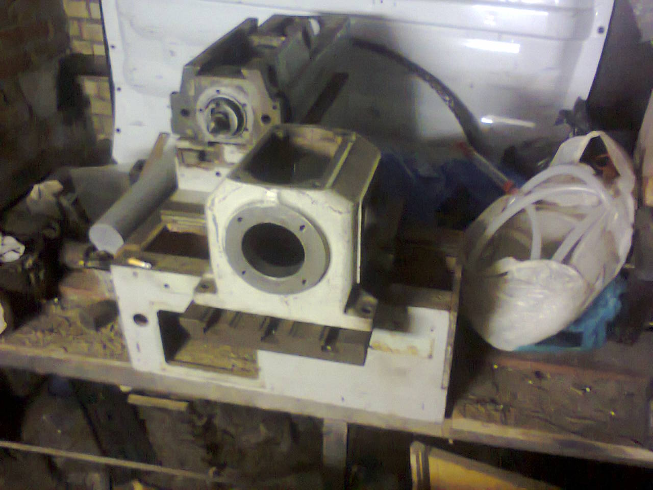 неплохой корпус для передней бабки. В прошлой жизни корпус от какого-то компрессора. Давай искать шпиндель. Ничего толкового не подворачивалось. Однажды нарыл на чипмейкеровской барахолке (отдельное спасибо Мише Aegis) шпиндельную бабку от 675 фрезера, причем вместе со шпинделем. Ценник был такой, что грех не хапнуть. Я ее и тогой :) Получил. Притащил. Водрузил. Теперь конструкция вырисовывается. даже обрезать ничего не надо. До полного комплекта осталось докупить плиту 400х300, на которой будет стоять резцедержка и фрезерная приставка. Ту железяку, что изначально планировал на шпиндельную бабку, переиграл на резцедержку. Хорошая вертушка получится на 8 инструментов, резцы планирую небольшие, типа 12х12.