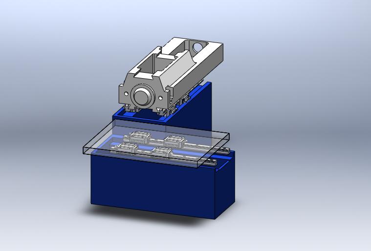 Немного поработал над картинками. Пока что предварительно. Как окончательно отрисую и прикину оставшиеся размеры, можно будет заказать проставки с чугуна под направляющие и потихоньку приступать к фрезеровке-сборке. Пока что такой вот видок, по кинематике ничего сложного