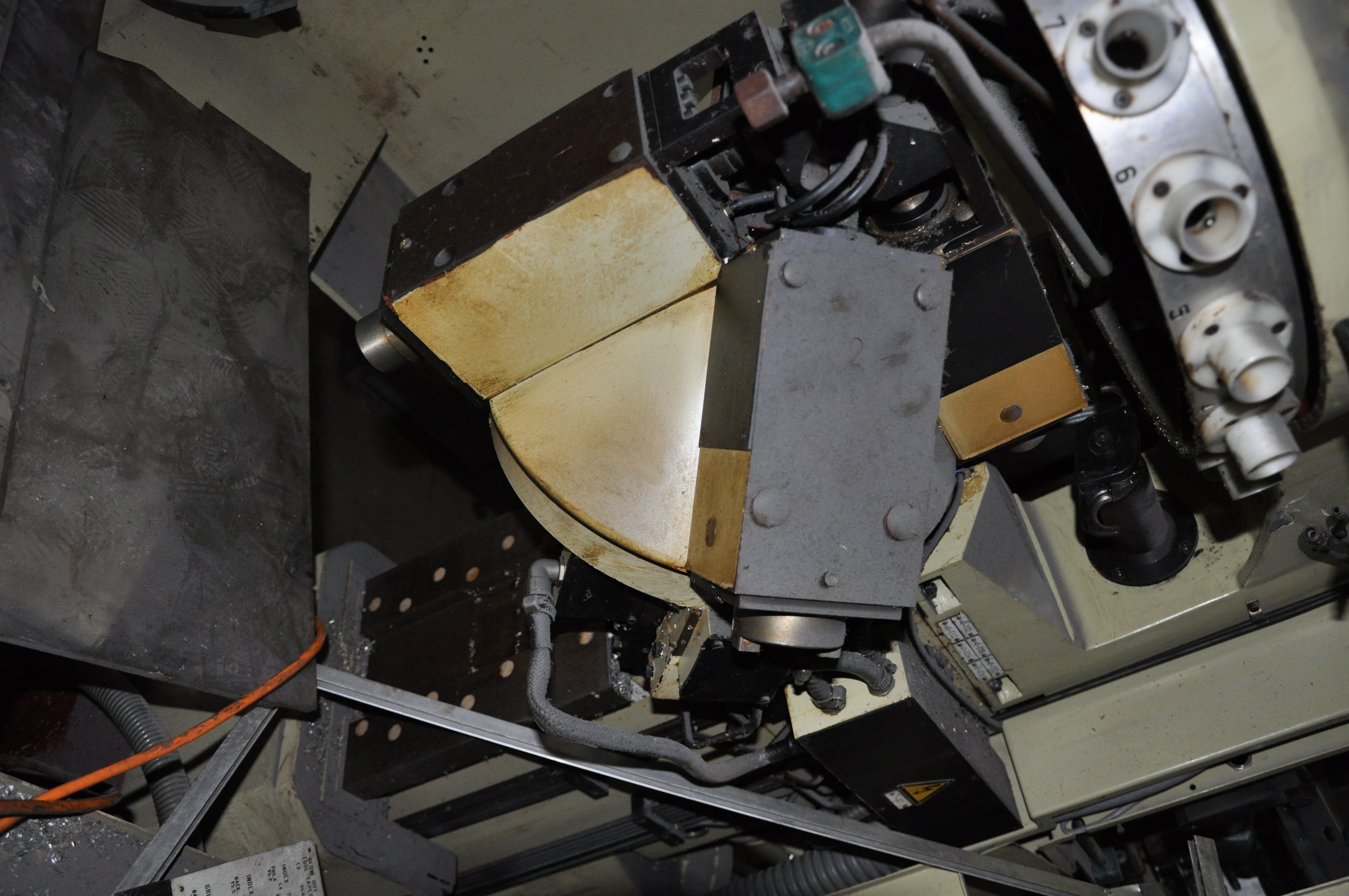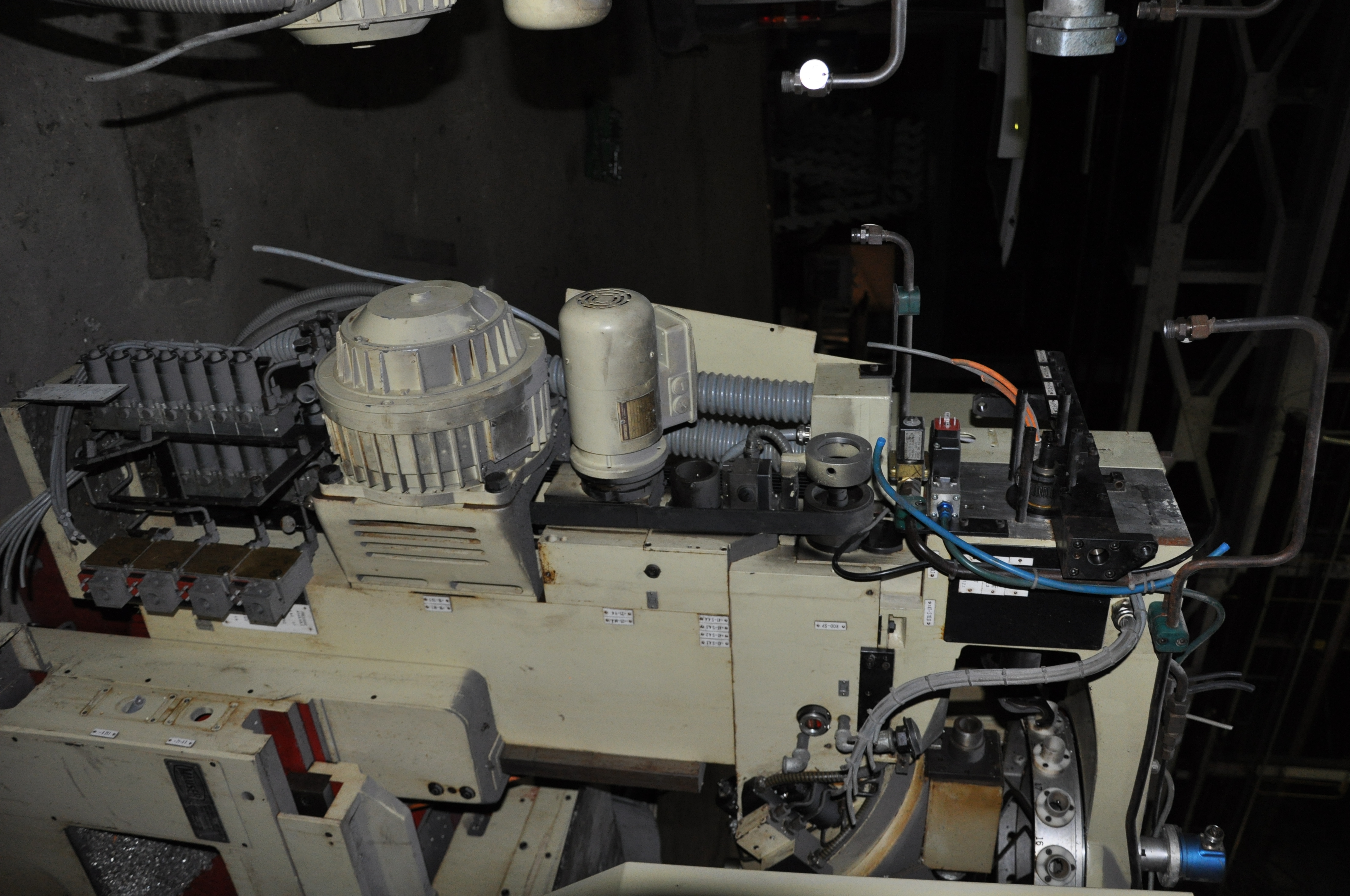 Да понятно все вроде, 4 шпинделя на револьвере, 18 инструментов в магазине, передний шпиндель в рабочей позиции, задний в позиции смены инструмента, холостые - 4500мм/мин, рабочие 1-3600мм/мин, стол 240х520, 5 Т-пазов 10H7 с межцентровым 45мм, поле обработки 230х180х210, расстояние шпиндель-стол 70-280мм, компоновка классическая - голова Z, стол X-Y, все на направляющих качения.aftaev писал(а):По тем фоткам что выложил, вообще ничего не понятно что это такое и как оно вообще работает