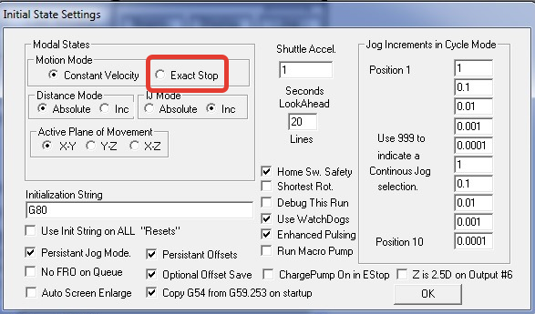 Тут можно только установить режим точной остановки в вершинах (Exact Stop).artclonic писал(а):Тем не менее? Тут могу эту настройку изменить или новый Мач где то надо нарыть?