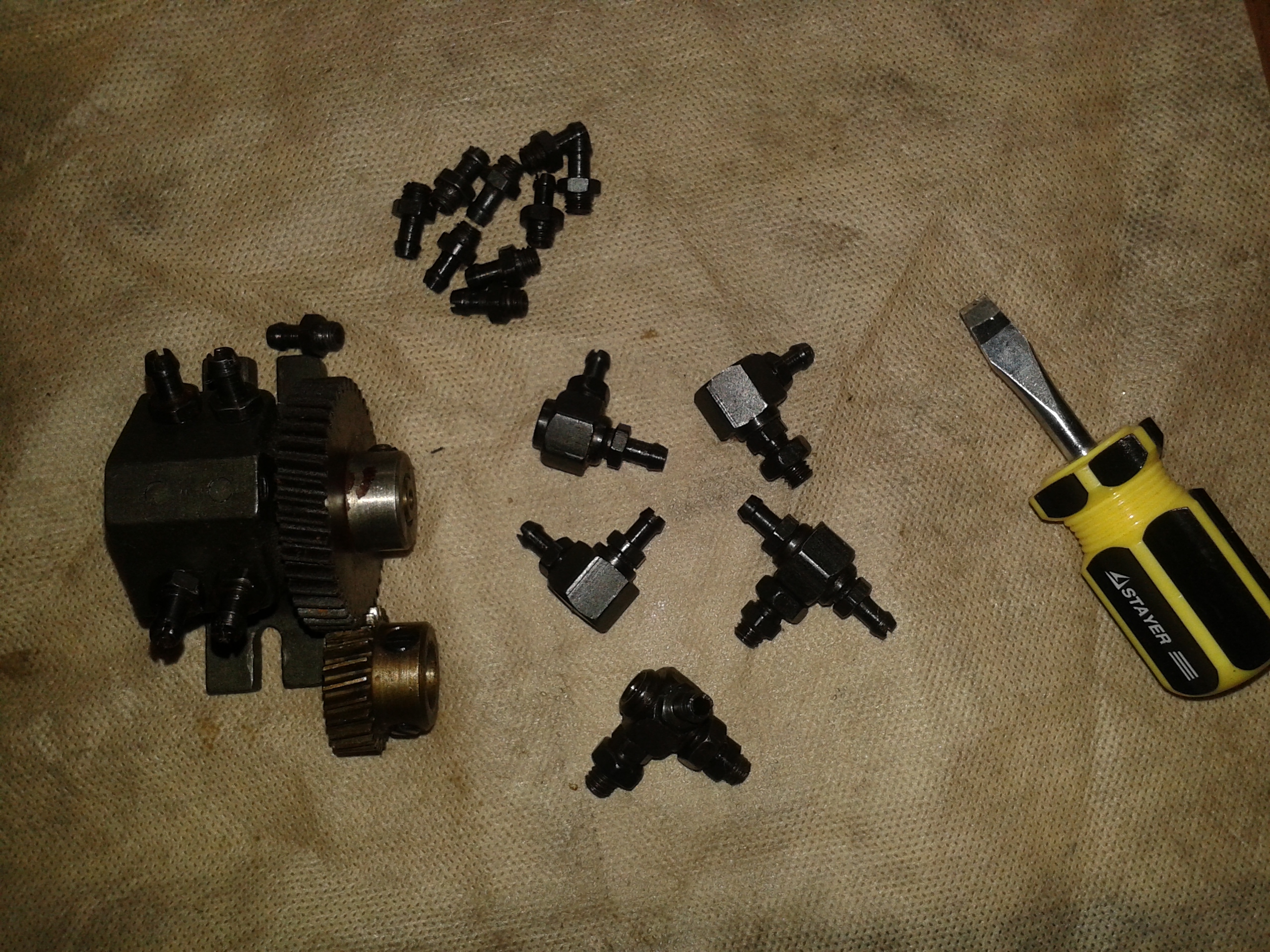 Маслонасосик естественно маломощный, куда уж там заливать, под пневмотрубку 6mm.