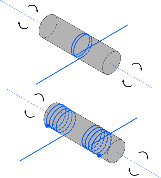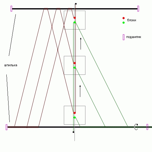 2. Сделать крепление троса на валу, чтобы при движении в одном направлении трос с одной стороны вала сматывался а на другую наматывался. Здесь обеспеченно максимальное движение, но по мере намотки троса, конечная точка троса на валу будет смещаться, что даст неравномерную подачу.