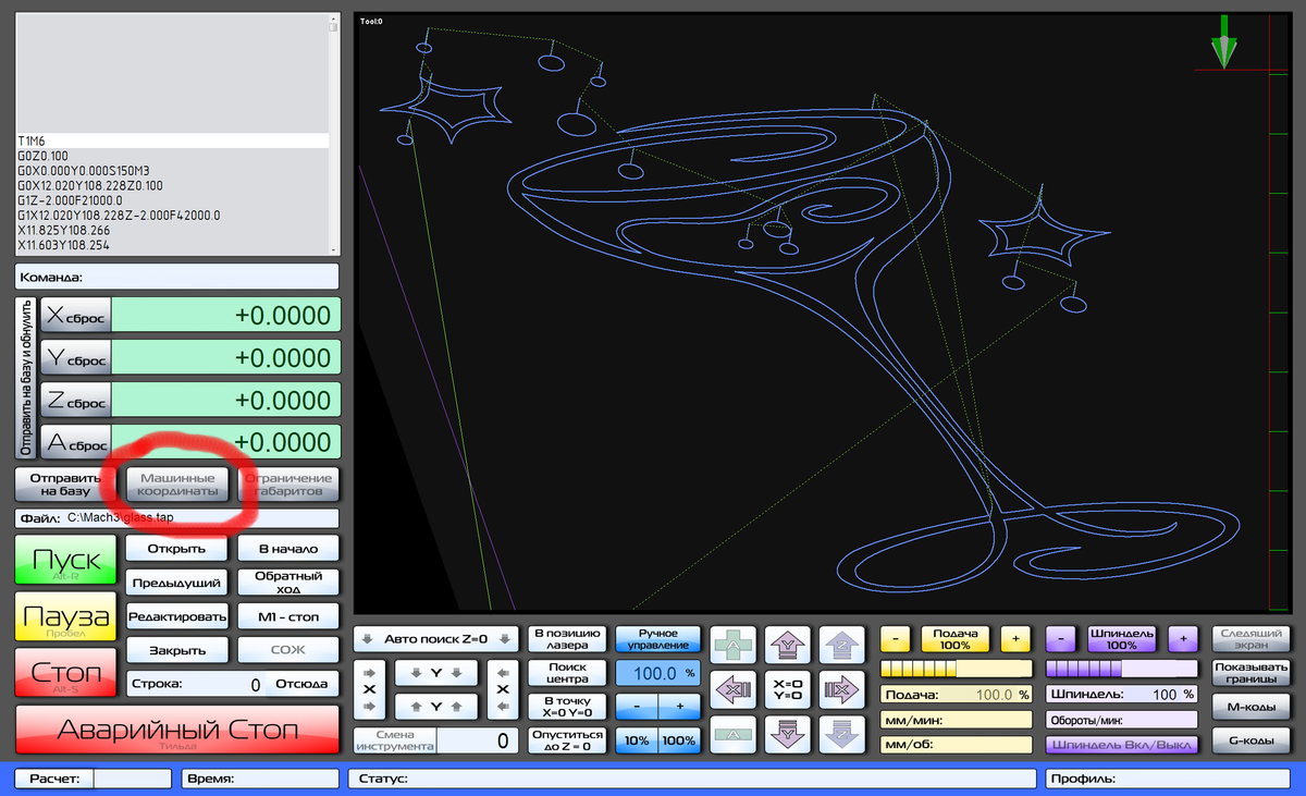 Прописывать эти координаты не нужно - это кнопка, но толк от неё есть только при наличии концевиков. Поставьте русский скин - быстрее разберётесь с Mach3 Скринсет для Mach3, русскоязычный #1Fendrik писал(а):где прописать эти самые машинные координаты