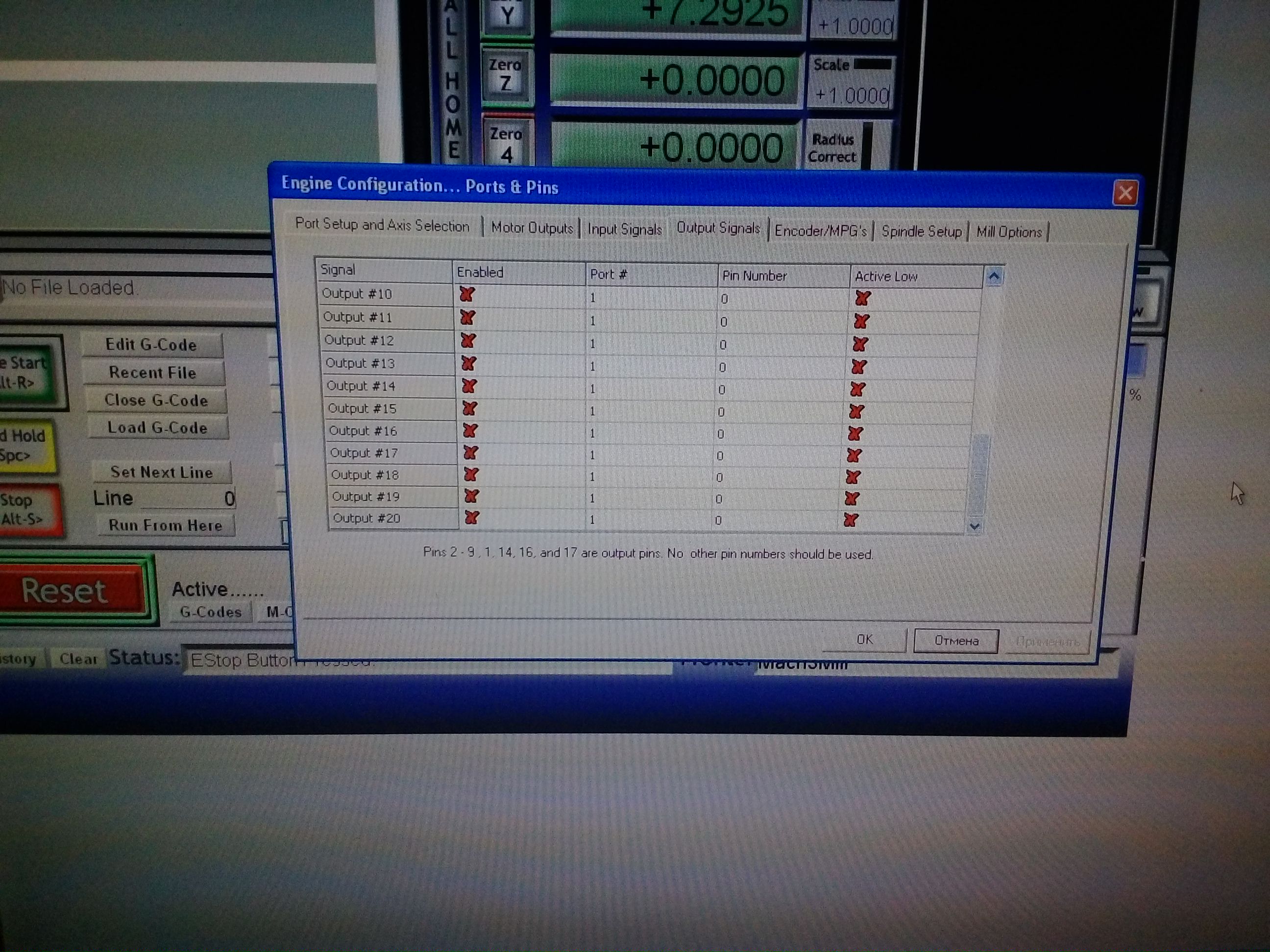 Когда побаловшись фрезеровкой в ручную и с управляющей программой понил что на экране матча фреза идет против часовой стрелка а реально на станке по часовой. Залес в настройки и поставил инверсию оси y и z (y - двигатель стоит справа в отличии от китайских станков, тут все понятно, но с z я не понил почему вмести ввер шла вниз) и тут началось контроллер стал глючить но работать в ручном режиме запустил уп и на половине уп станок встал.