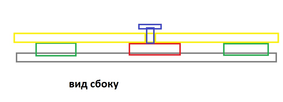 обычно на оси стоит 2 каретки, ставим 3-4. Две каретки (зеленым) прикручиваем к платформе, а вот каретку красную нужно подпружинить(оранжевое) или поджать винтиком. Желтым показано платформа на которую прикручены каретки.