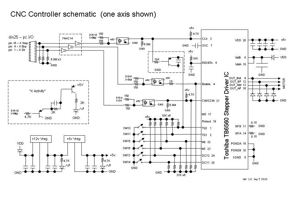 3) Так как небыло с какой стороны подступиться к проблеме начал с LPT порта - прозвонил все контакты (шнур звонится 100%) оказалось на некоторые пины приходит 4в на некоторые 2.5 (из пинов 1-9, 14, 16, 17) - кто нибуть знает это нормально? Так как оси стали нормально по светодиодам включаться - это значит что логика работает и оптроны рабочие - логично что далее на очереди контроллер TB6560AHQ - но тут нюанс - при востановлении в правах глючной советской микросхемы - двигатель крутится - значит ли это что TB6560AHQ - рабочая? Я уже заказал на замену новую но не совсем уверен что и это поможет