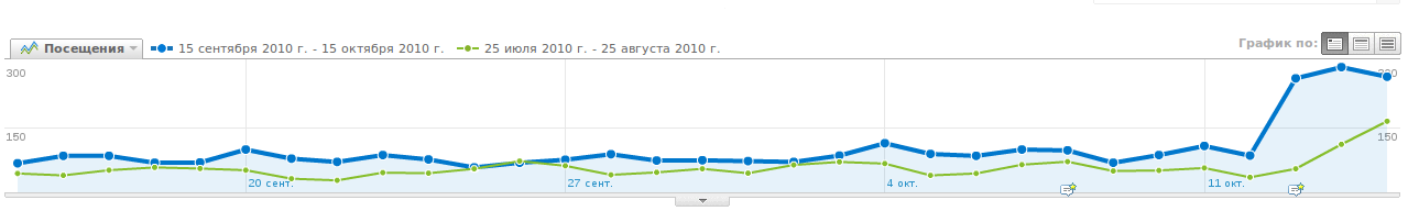 Интересная статистика: сравнение количества посетителей после анонса новой версии Gcodetools и после анонса Gcodetools на inkscape.org. Нужно учесть, что обычно выход новой версии я анонсирую 10 сайтах, а inkscape.org всего один.